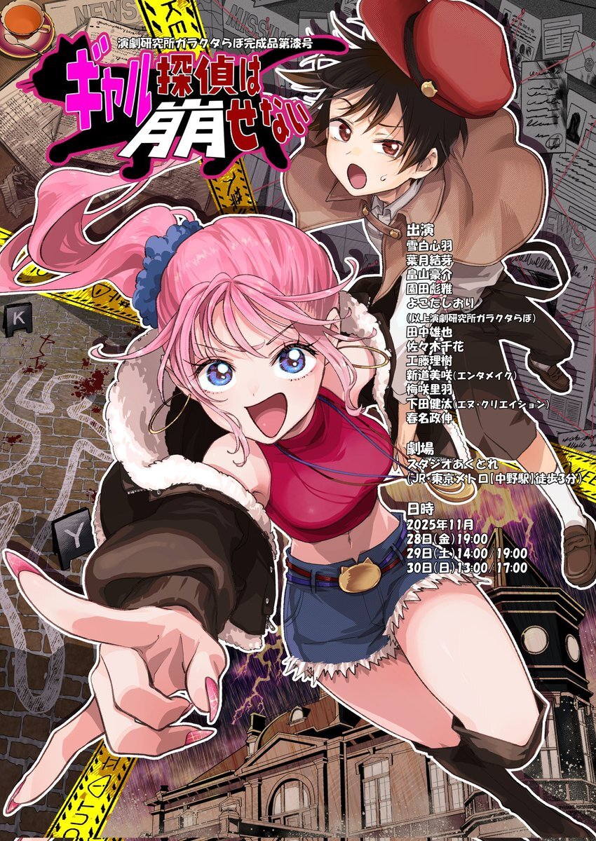 📢出演情報📢 #畠山豪介 #下田健汰#演劇研究所ガラクタらぼ 完成品第漆号「#ギャル探偵は崩せない」に出演します! 日時:11/28~30 場所:スタジオあくとれ チケット予約は2通り 畠山予約フォーム:quartet-online.net/ticket/galdete… 下田予約フォーム:quartet-online.net/ticket/galdete… ぜひ観に来てね #エヌクリ #舞台 pic.x.com/XQMGJyyRDW