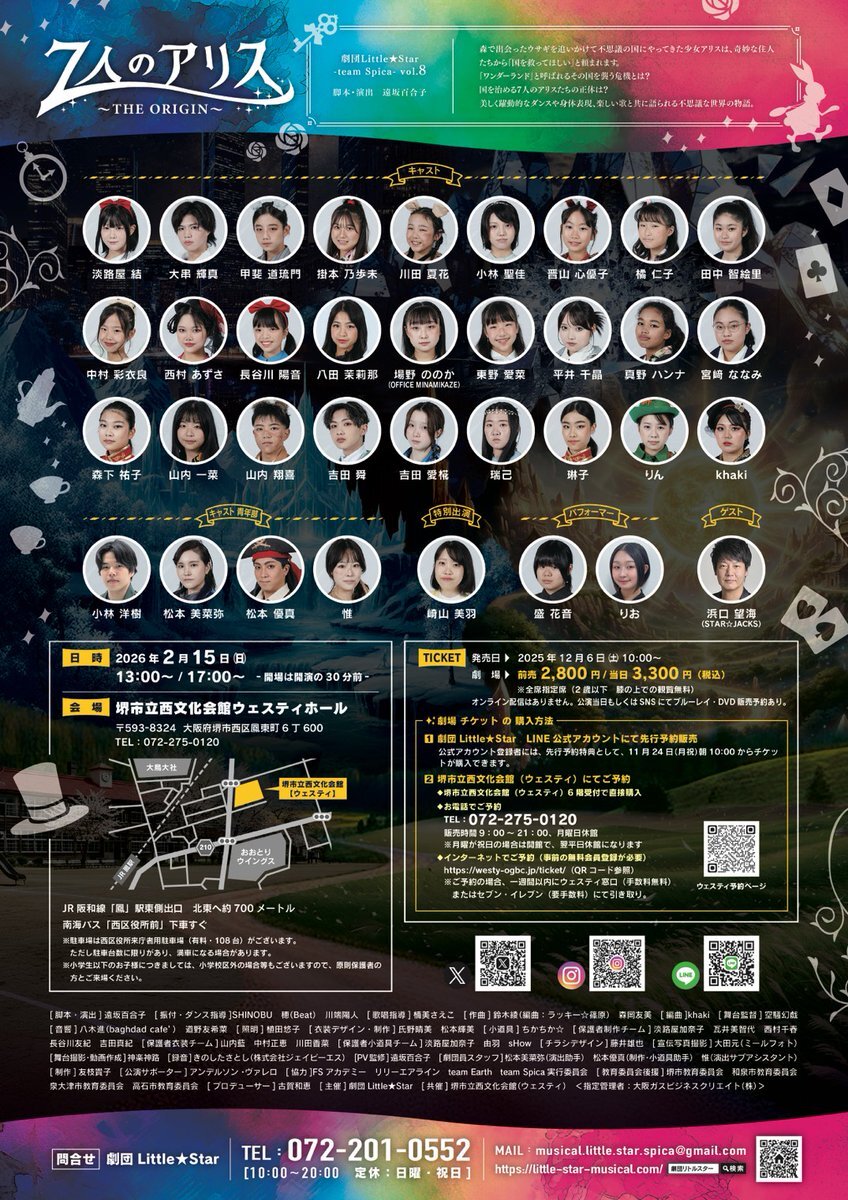 📢team Spica vol.8 『7人のアリス〜THE ORIGIN〜』 脚本・演出 遠坂百合子 ♠公演日時:2026年2月15日(日) 13時~/17時~ @堺市立西文化会館1階ウェスティホール ♠チケット情報は ↓ 続く #劇団littlestar #劇団リトルスター #鳳 #堺市 #高石市 #和泉市 #泉大津市 #子役 #7人のアリス2026
