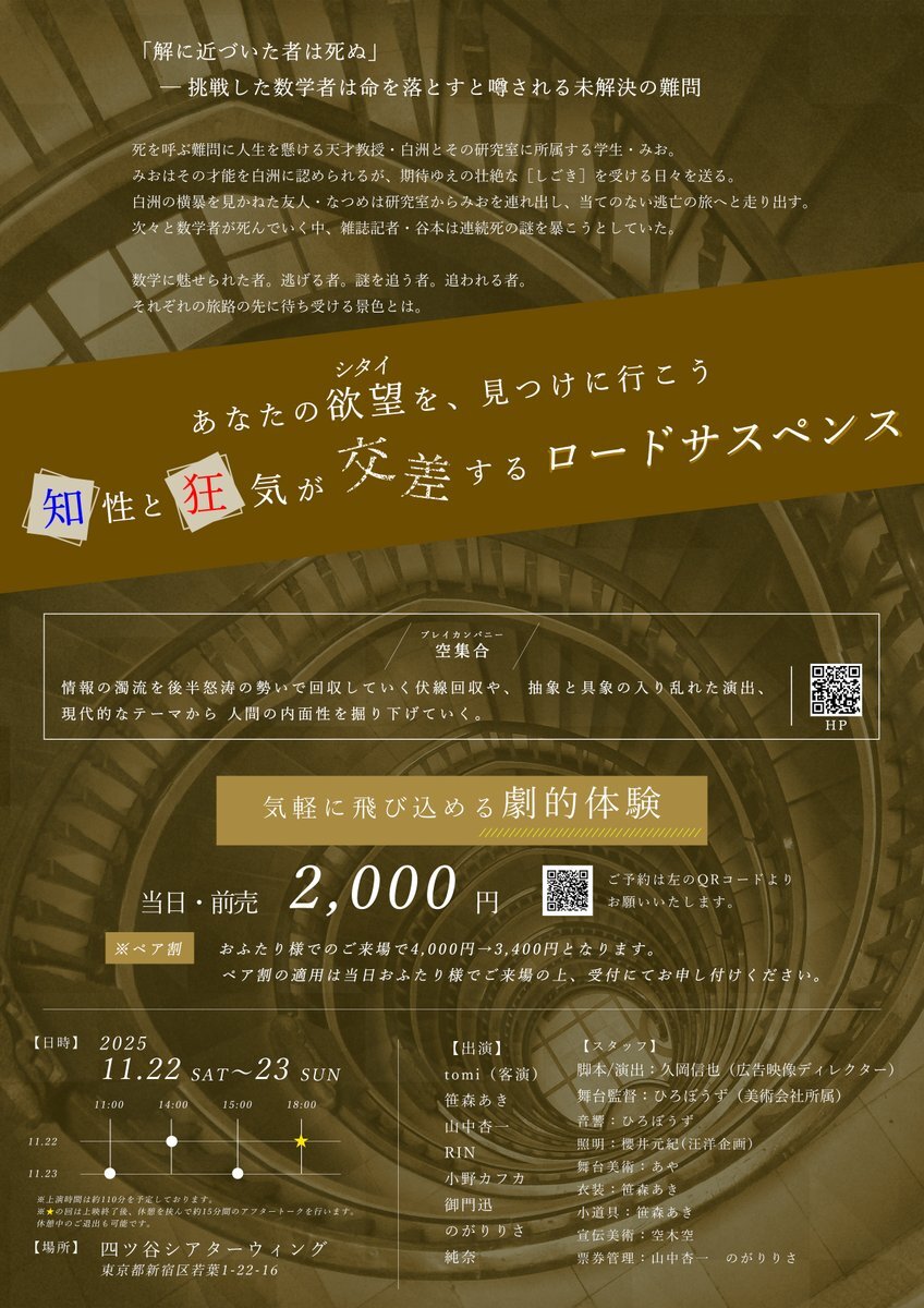 僕の出演する『連続するシタイの方程式』まであと2日!! ∞∞∞∞∞∞∞∞∞∞∞∞∞∞∞ その解に近づく者は死ぬといわれる数学の未解決問題をめぐるロードサスペンス 「逃げるは人生においては正しい道の一つなんだよ」 ∞∞∞∞∞∞∞∞∞∞∞∞∞∞∞ 予約 shibai-engine.net/prism/webform.… #演劇 #舞台 pic.x.com/SNxDfnYppX