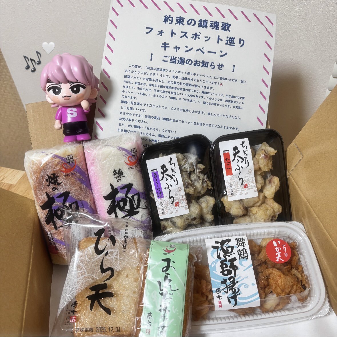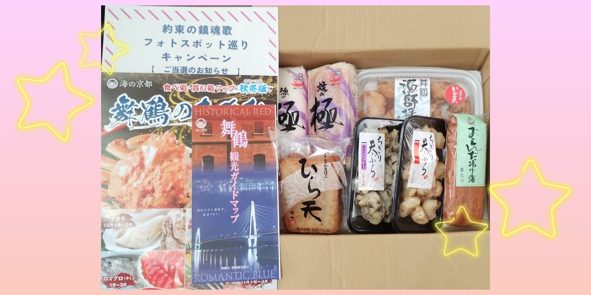 実は…『約束の鎮魂歌フォトスポット巡りキャンペーン』に当選しました〜🎯 舞鶴市の特産品がいっぱい✨ お友達のオススメの食べ方でひら天を食べたらめっちゃ美味しかった😋 素敵な舞台の思い出に嬉しい事が増えました🩷また舞鶴に行きます♪ありがとうございました✨ #約束の鎮魂歌 #舞鶴市 pic.x.com/1eq92MOIYq