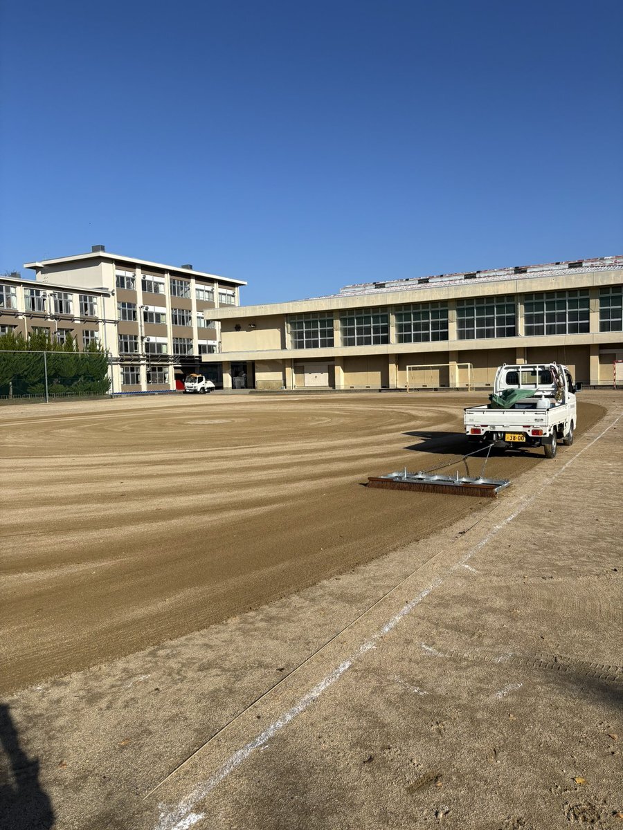 グラウンド整備 市が防災訓練で使用した学校グラウンドの整備作業を実施🏫 数年前までは訓練後に市の職員が人力で整地してたらしいが、今回は弊社が整備用具を購入し使ってみたら短時間でキレイに整地できました👌 こんな便利なモノがあるとは知らなかった😳 #舞鶴市 pic.x.com/3NvbsVFON0