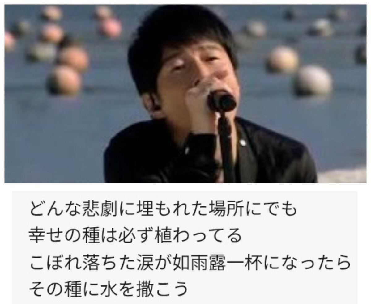 この好転的な歌詞めっちゃ好きだし 心に刺さって染み入ります。 #花の匂い #Documentaryfilm Mr.Children やっぱ桜井さん天才ですわ pic.x.com/6hJnTgYa53