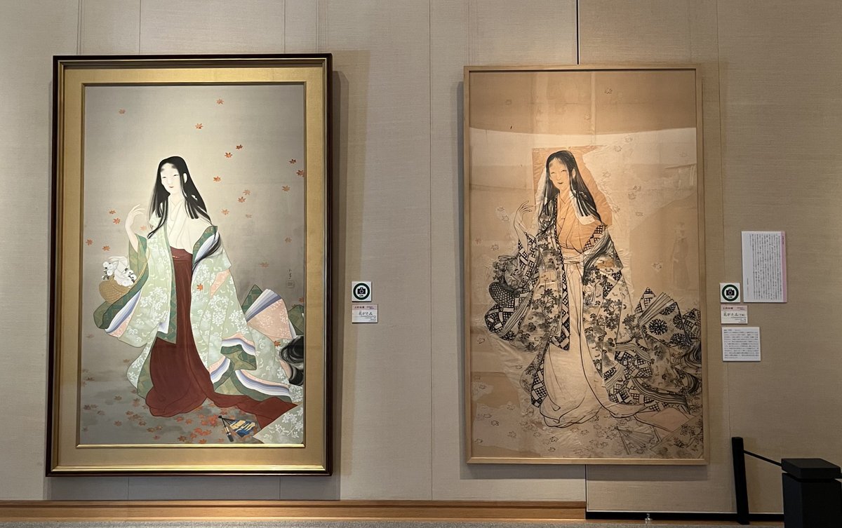 【#下絵と本画展 開催中✨】 / 《花がたみ》とその下絵、撮影可能📷 展示は11/30まで \ 描かれているのは謡曲『花筐』の照日前。 松園はあえて平安時代の衣裳に描き変えていますが、『花筐』はそれより前の時代のお話です。 十二単の丁寧な描き込みが下絵にも表れています。 表情にもぜひご注目!