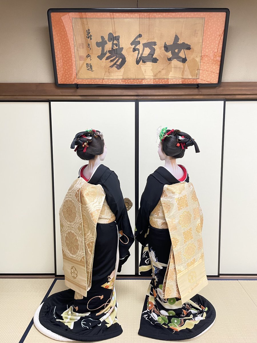 ふく侑さん、ふく凪さんが"先笄"を結われたご挨拶に来られました。 "先笄"とは衿替え前の2、3週間だけ結う、特別な髪型です。 #京都 #宮川町 #芸妓 #舞妓 #花街 #先笄 #kyoto #miyagawacho #geiko #maiko pic.x.com/224sYV35xX