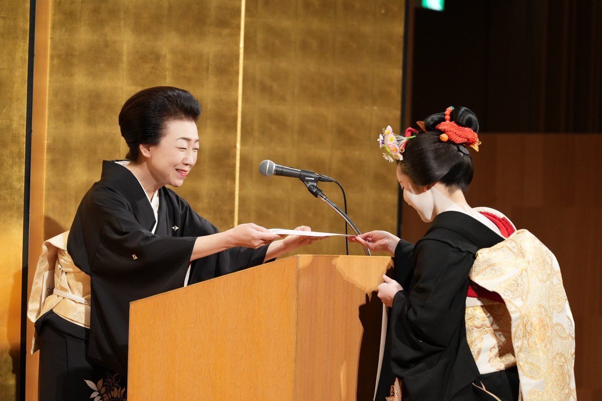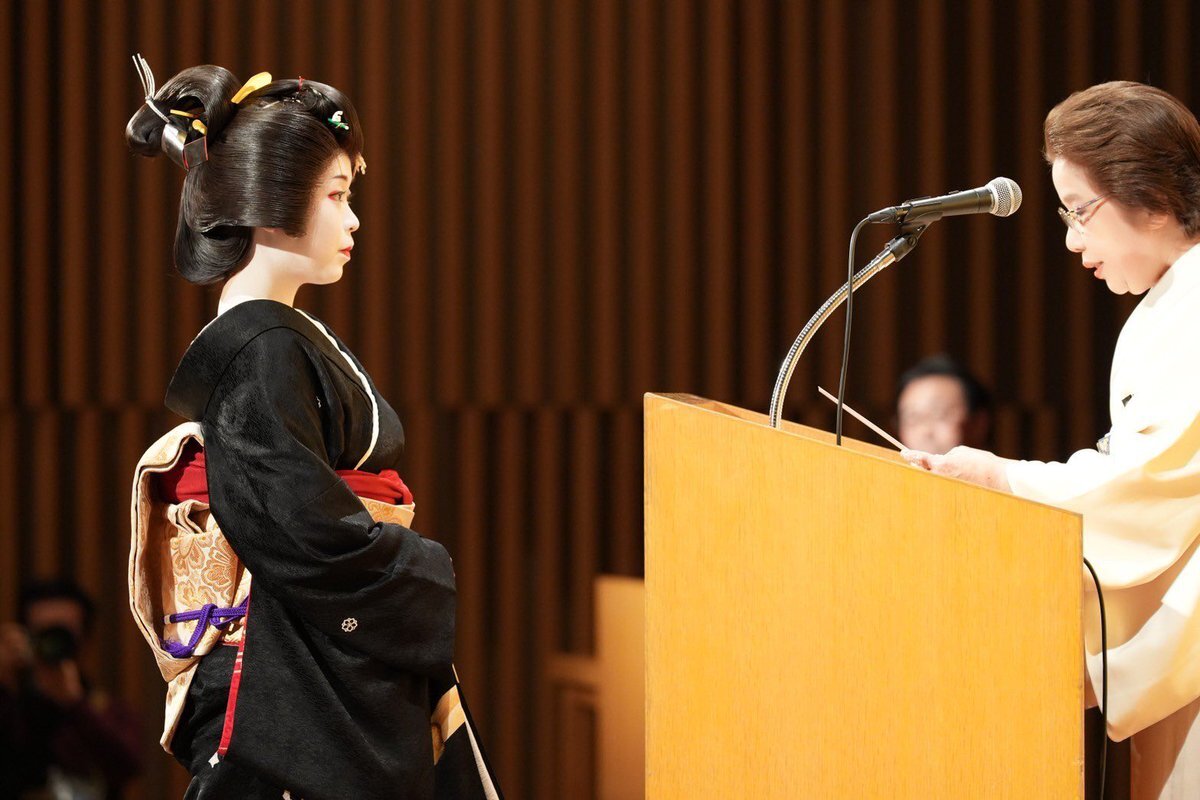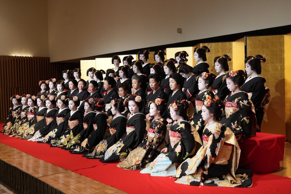 新年あけまして おめでとうございます。 本年も、どうぞ宮川町をご贔屓にお願いいたします。   令和7年1月7日 宮川町お茶屋組合・東山女子学園「始業式」を執り行ないました。 また、数年ぶりとなる芸舞妓の集合写真を撮影しました。 #京都 #宮川町#芸妓 #舞妓 #花街 #kyoto pic.x.com/e5p90jn8Jf