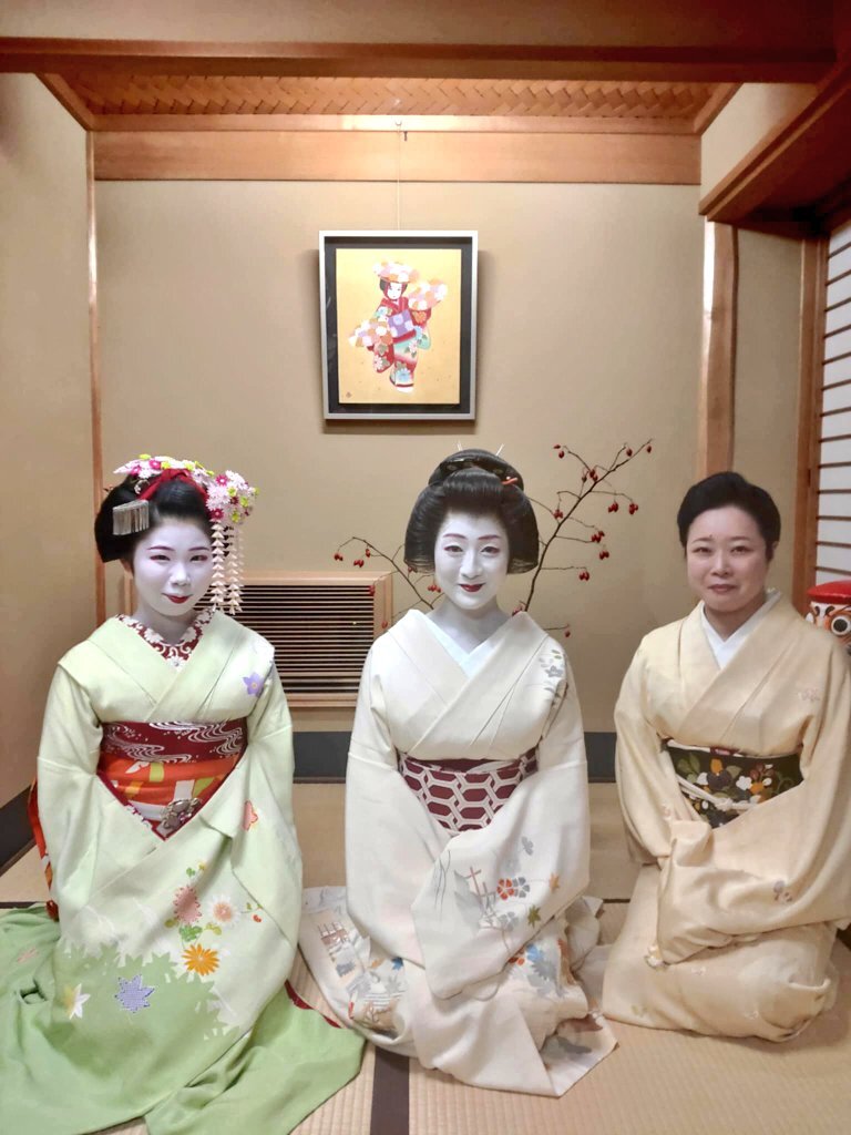 〖京都宮川町「湊家」〗 お客様より、京都・宮川町の老舗お茶屋「湊家」さまに作品たちを飾っていただいたお写真を頂戴しました。 このような貴重な機会をいただけましたこと、心より感謝申し上げます🌸 #小扇 さん #ふく光 さん #ふく久 さん #京都 #宮川町 #湊家 #芸舞妓 #京都五花街 #花街 #日本画 pic.x.com/PS1RQI7vT0