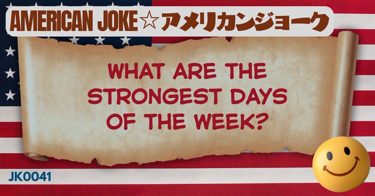 😁アメリカンジョークです。 アメリカ人はこのジョークで笑います。 どこがおもしろいのか、わかりますか? ✅ジョーク本文 Q: What are the strongest days of the week? A: Saturday and Sunday... the rest are weekdays. #アメリカンジョーク #英語学習 #英語フレーズ 和訳と解説はこちら👇 pic.x.com/ojxNKOppse