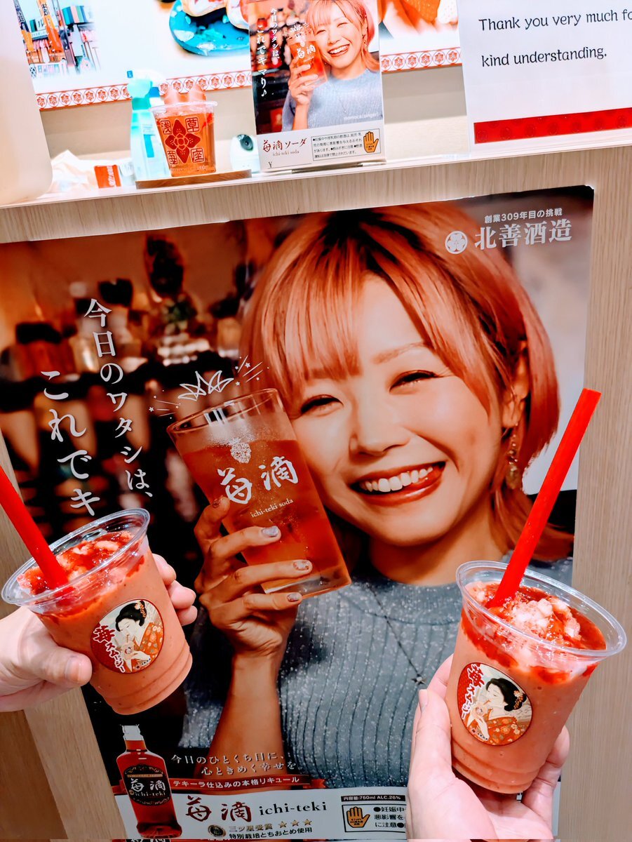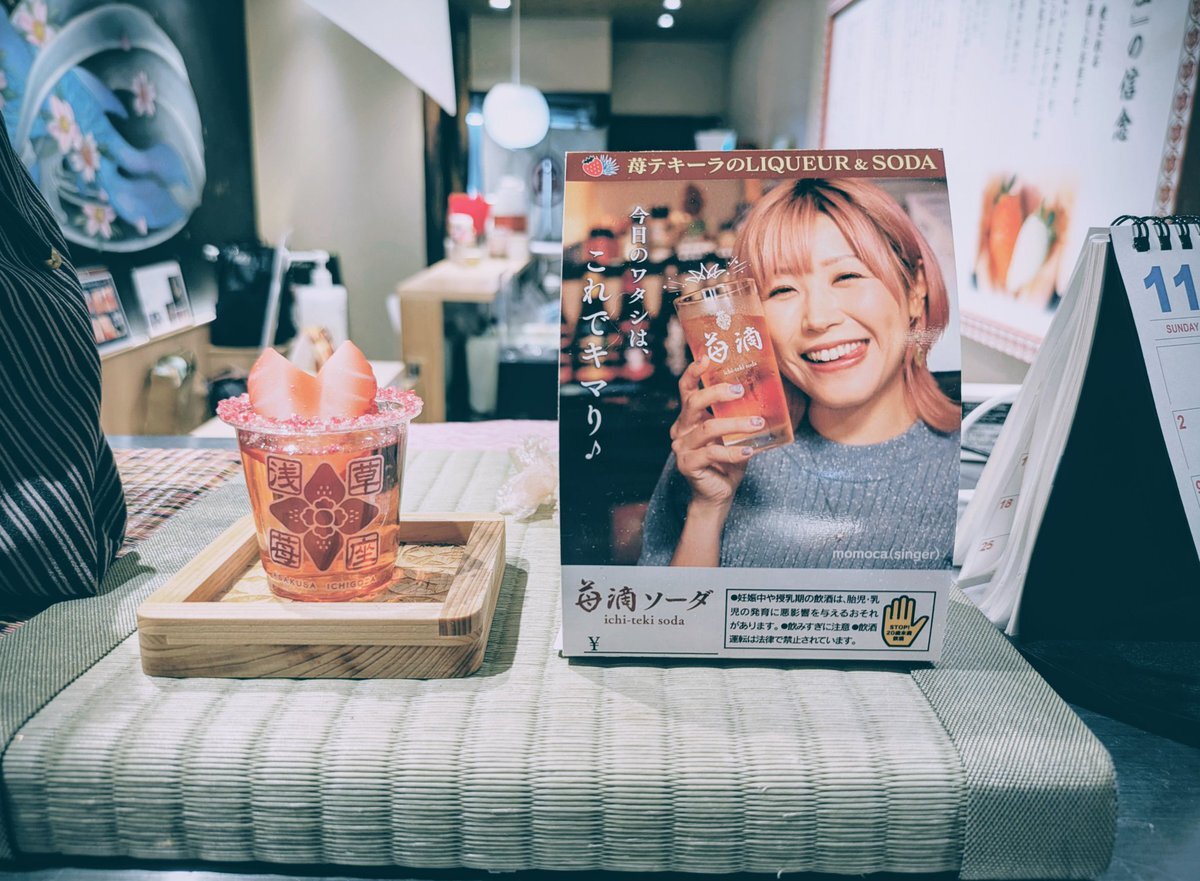 momocaさんと浅草苺座で乾杯してきたぁー🍓✨ 小さいmomocaが入口で店番してるみたいで可愛い😍 おわかりいただけただろうか… 小さいmomocaと大きいmomocaと4人で乾杯🍻笑 スムージー美味すぎ👍次は苺テキーラソーダに挑戦する‼️ ご馳走様でした🤗 #momoca #浅草苺座 #苺スムージー #苺滴 #浅草観光 pic.x.com/fjBJPKvCU4