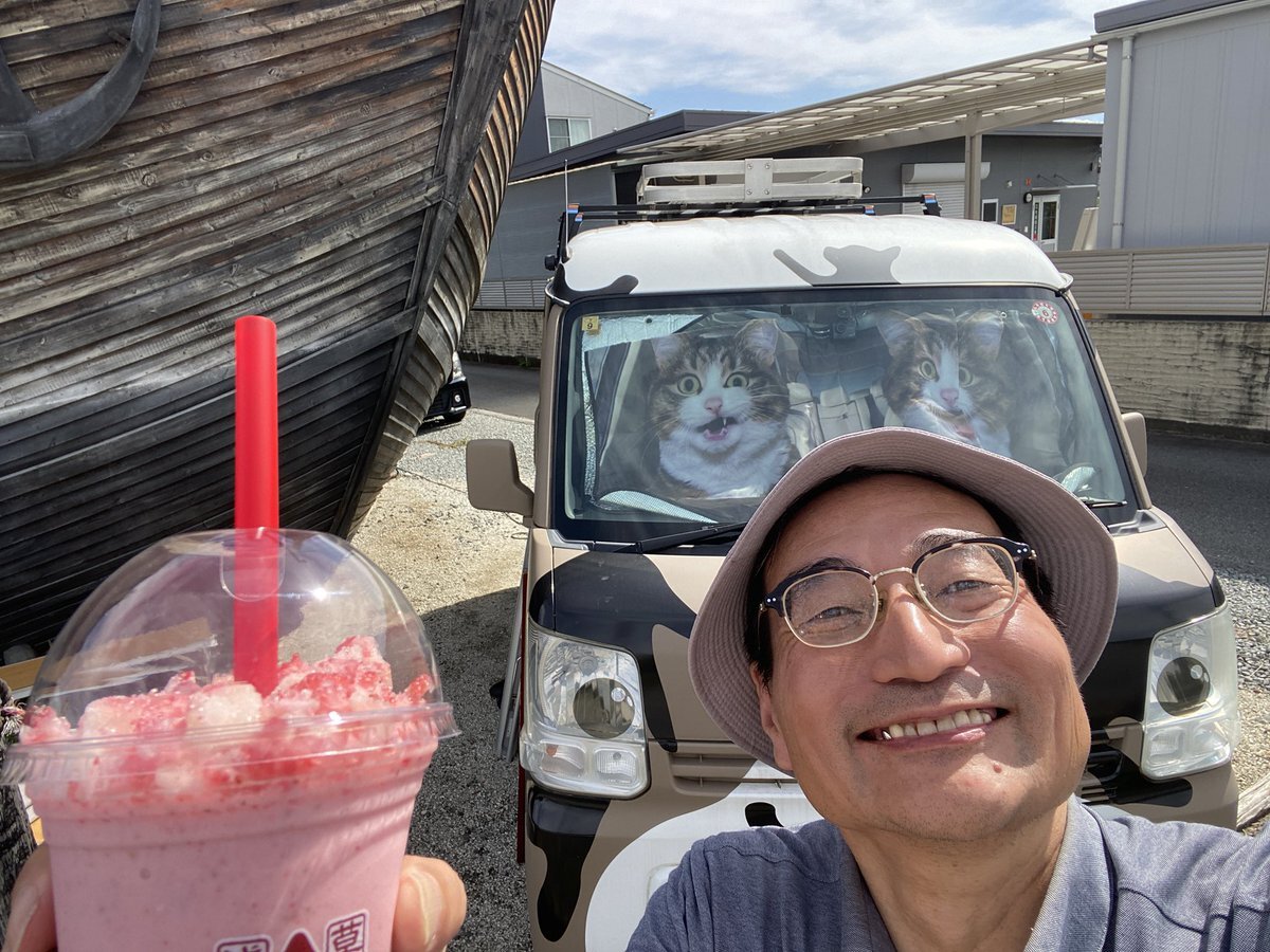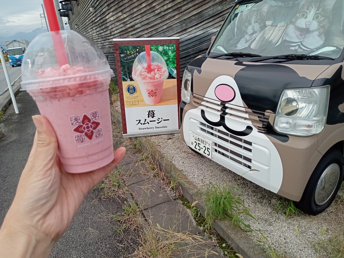 先週の土曜日、小瀬に行く前に、お邪魔しました🍓🐱 久しぶりにいただきました🍓 安定の美味しさ🍓😍 苺スムージー🍓、さいこー😂👍 #苺スムージー #猫のスヴニール #猫sキッチン #猫さん pic.x.com/8mGnx83WHt