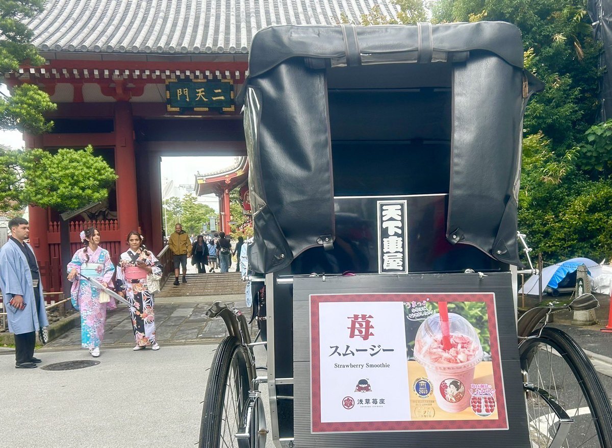 浅草の元気印「東京力車」さんに苺スムージーをお届け🍓✨ こんがり日焼け×チャーミング笑顔にズキュン💘 浅草がもっと好きになりました☺️🏮 次回は収さんが人力車に乗った姿をお届けします! #浅草 #東京力車 #苺スムージー pic.x.com/2upyCR8X4x