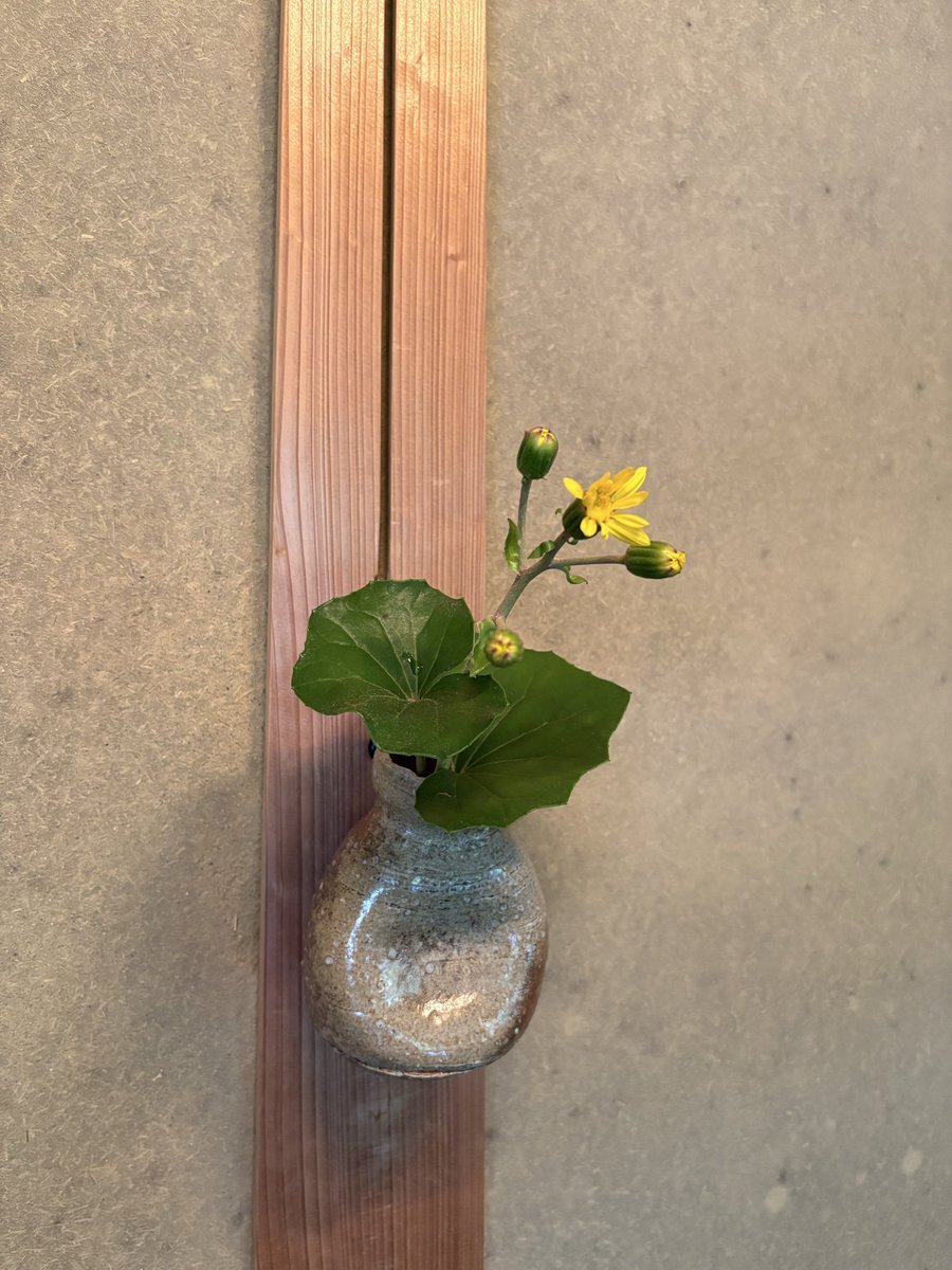 🍵 #茶室 墨光庵 三連休も営業中🍵 本日のお花→ #ツワブキ 肌寒いこの季節、可愛い和菓子とお抹茶で温まりませんか☺️ ✅当茶室は作法が分からない・正座ができない方でも大丈夫です ✅日本画×始動展に合わせて、限定お菓子「はなひらく」を提供中です🌸 #富山県水墨美術館 pic.x.com/YANExnw7LG