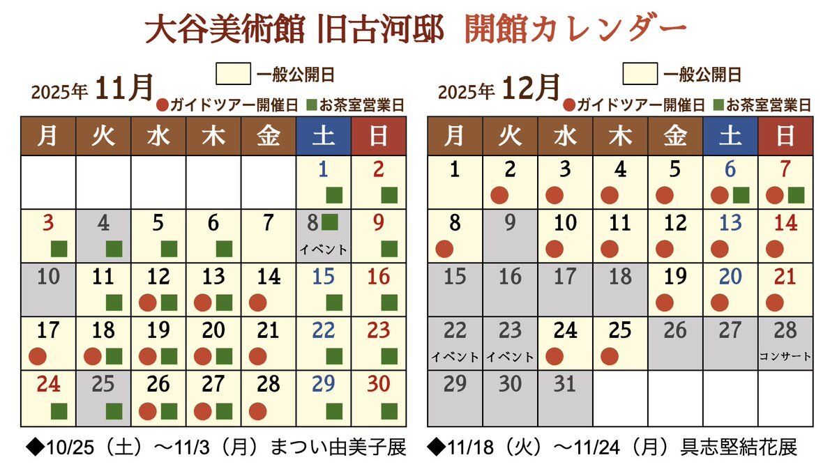 【11・12月 #大谷美術館 #旧古河邸 開館カレンダー】 見学・喫茶は一般公開日にご利用いただけます。 ◆開館時間:10:30〜16:30[最終入館16:00] ◆#喫茶室:11:00〜16:30[L.O.16:00]12/8からは12:00〜 ◆#茶室:11:00〜16:00[L.O.15:45] ▽詳細はHP営業案内をご覧ください🔗otanimuseum.blogspot.com pic.x.com/y1mrNLxtdP