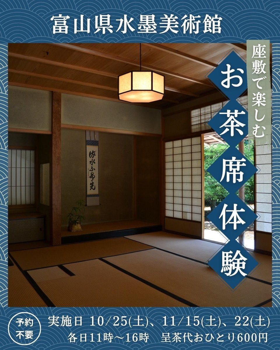 🍵茶室臨時営業中🍵 平日ですが臨時営業しています。 お花は、照葉(ナツツバキ)、ホトトギス、白フジバカマです。 11月に入ったのでお座敷は風炉から炉になりました🍵 茶庭の紅葉も色づいて見ごろです🍁 #富山県水墨美術館 #水墨美術館 #茶室 pic.x.com/eDOt1nInp5