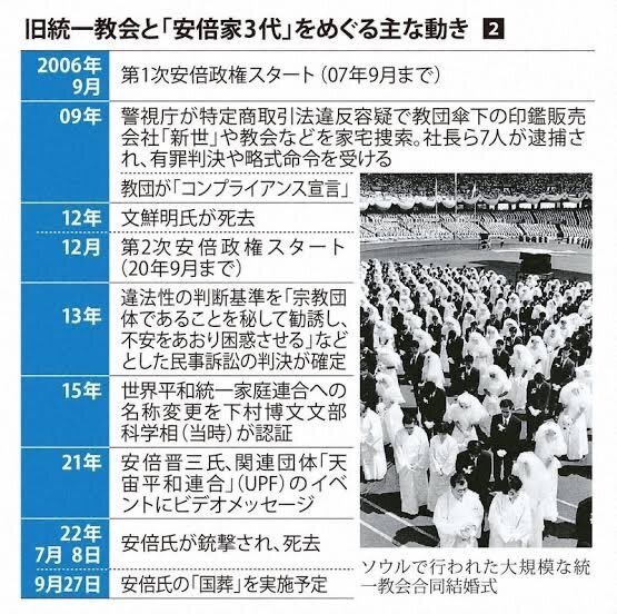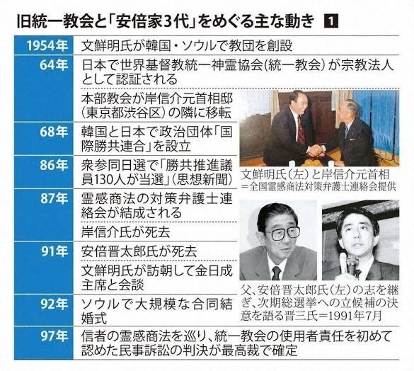 返信先:@kikumaco#菊池誠 さんは #統一教会 問題の矮小化に一生懸命ですね 統一教会は信者の票数のみで影響力を行使しているのではなく、60年近く昔から自民党、#安倍晋三 一族と癒着してきたのですよ pic.x.com/1j2dUyTQhc x.com/kikumaco/statu…