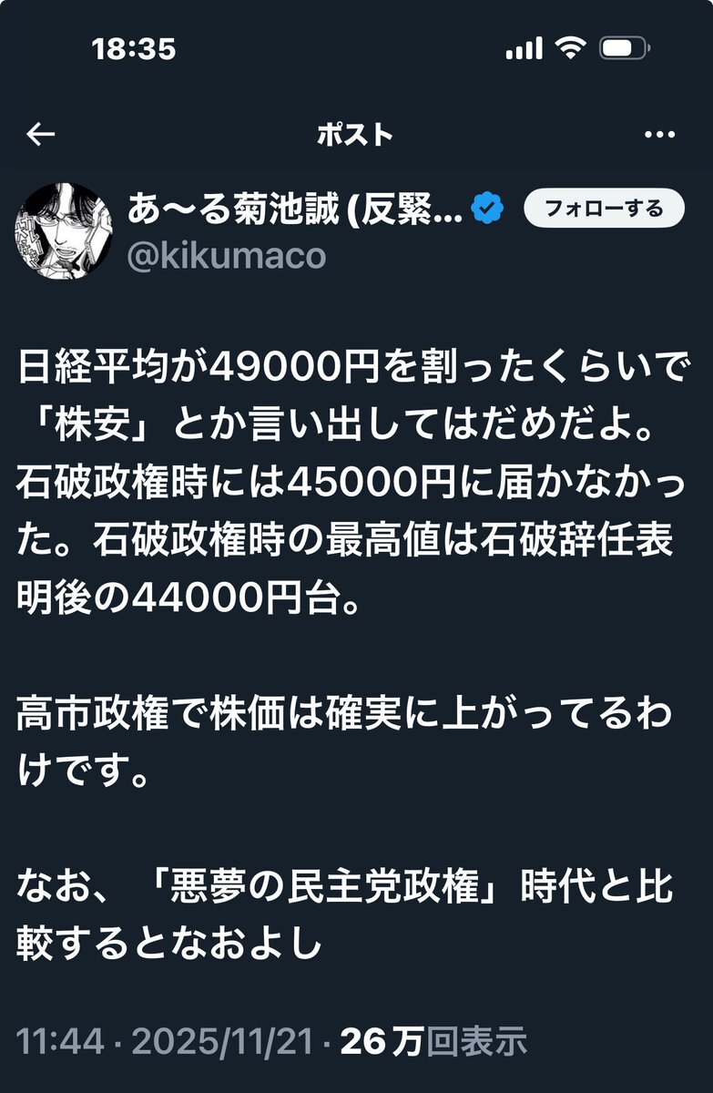 返信先:@kikumaco#菊池誠 さんは現実を見ましょう x.com/pheasant_mt/st…