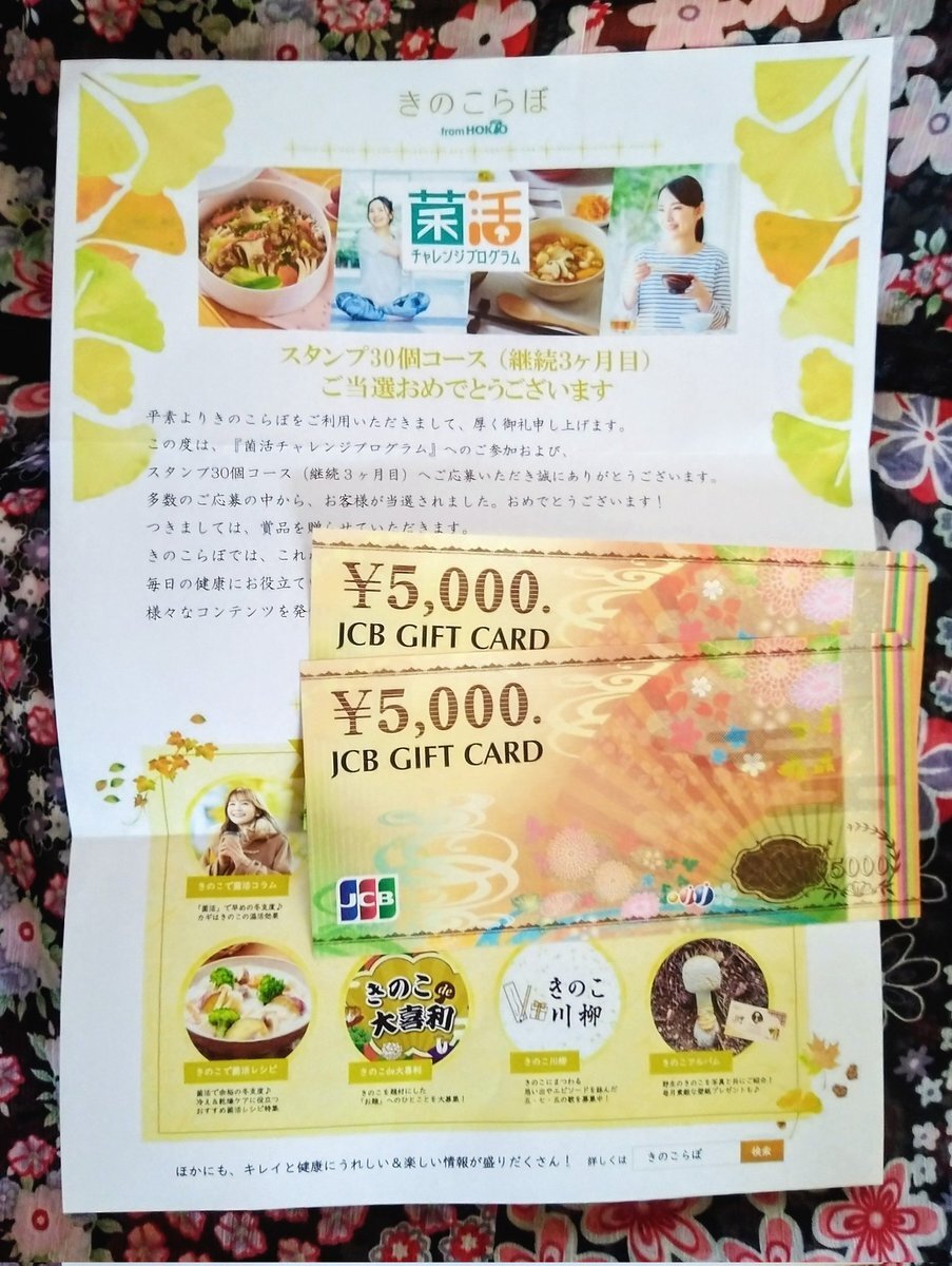X外ですが、ホクト きのこらぼ( @kinokolabo)さまの #菌活チャレンジプログラム でJCBギフトカードをいただきました🎁✨ありがとうございます♪ 毎日キノコを食べて免疫力アップ!菌活頑張ります🍄🍄🍄 #ホクト #菌活 pic.x.com/RQ3Dl1AokP