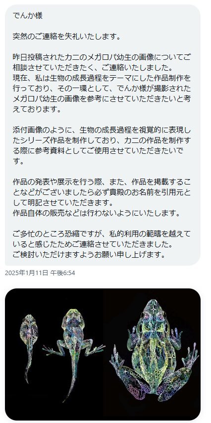 そういえばトレース作家が話題になってたけど、私の写真をモチーフに絵を描いてくれた学生さんは、事前にお手本のような丁寧なやりとりをしてくれて嬉しかった