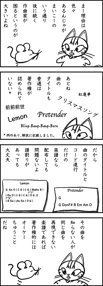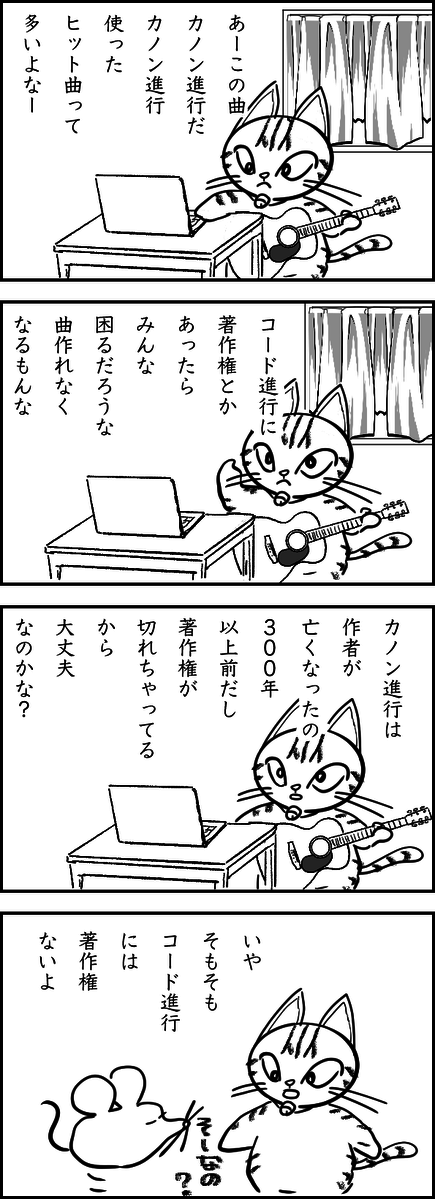おと猫まいこーVol.19「コード進行の著作権」公開しました。 楽曲のコード進行に著作権はあるのか?ブルース進行やカノン進行に著作権があったらたまらんですよね。 解説付きは下記から otochizai.com #著作権 #コード進行 #楽曲のタイトル #楽譜 #おと猫 pic.x.com/mWw1SC05gZ