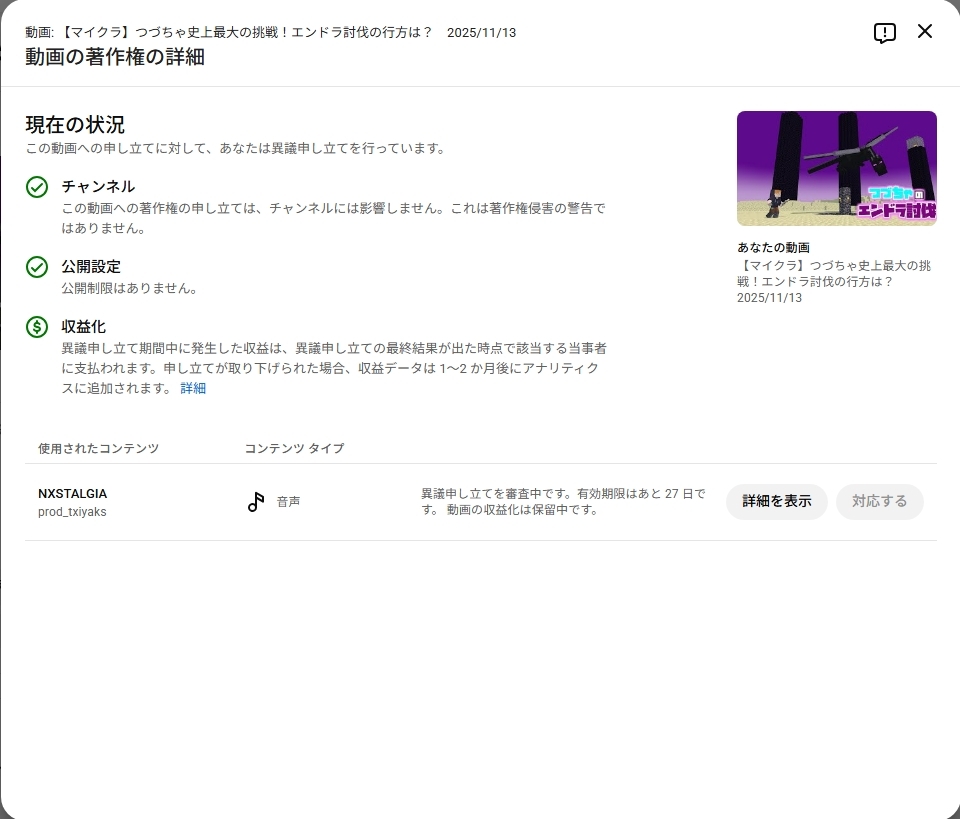 しれっと収益化の警告が消えてた🤔 申請者の取り下げだったのかYouTubeの裁定なのか分からんけど、こちらに「異議申し立てと言う手間」をとらせてるんやから報告位したらどうですか❓🤔 #YouTube #著作権 @TeamYouTube pic.x.com/MSXUvNJcn4 x.com/tsudzukifirm/s…
