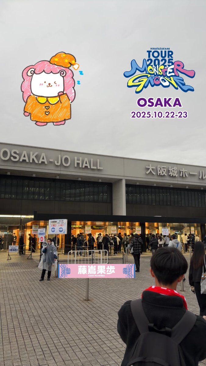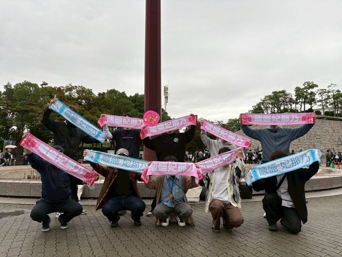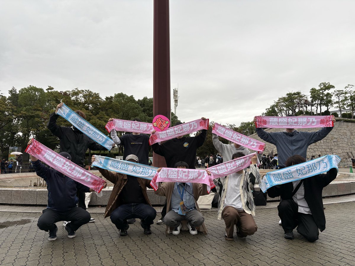 〜蔵盛妃那乃ちゃん推し集合写真 in大阪Day1〜 なんとか天候も耐え、一緒に凱旋をお祝いできて嬉しい限りです!! 妃那乃ちゃんへの愛がより深まりました🪭 明日も本日と同じ時間・場所で実施予定ですので何卒🙇 #蔵盛妃那乃 #MONSTERGROOVE2025 #ヤなことぜんぶ笑いとばせ pic.x.com/tXmbWELYQI
