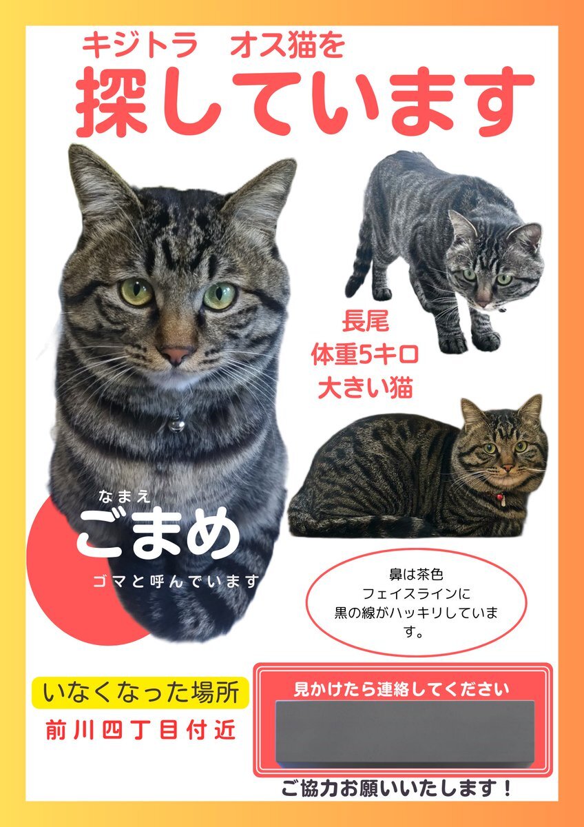 キジトラ ごまめ 迷い猫 捜索中 埼玉県 川口・草加@gom_neko