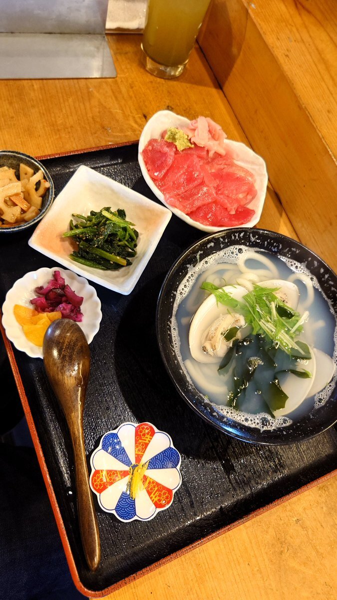 有楽町『伊勢桑名 貝縁』 10月で閉館となる有楽町ビル内にある三重県桑名のハマグリ卸問屋が運営する蛤専門料理屋。 注文は 天然はまぐり10年×1 バターしょう油焼・アンチョビオイル焼など焼蛤18個 蛤の串かつ×2 日本酒は「作」と「夏のペンギン」🍶 〆は「蛤ラーメン」😋 蛤旨し👍 #有楽町 #蛤 pic.x.com/8JdeyWC785