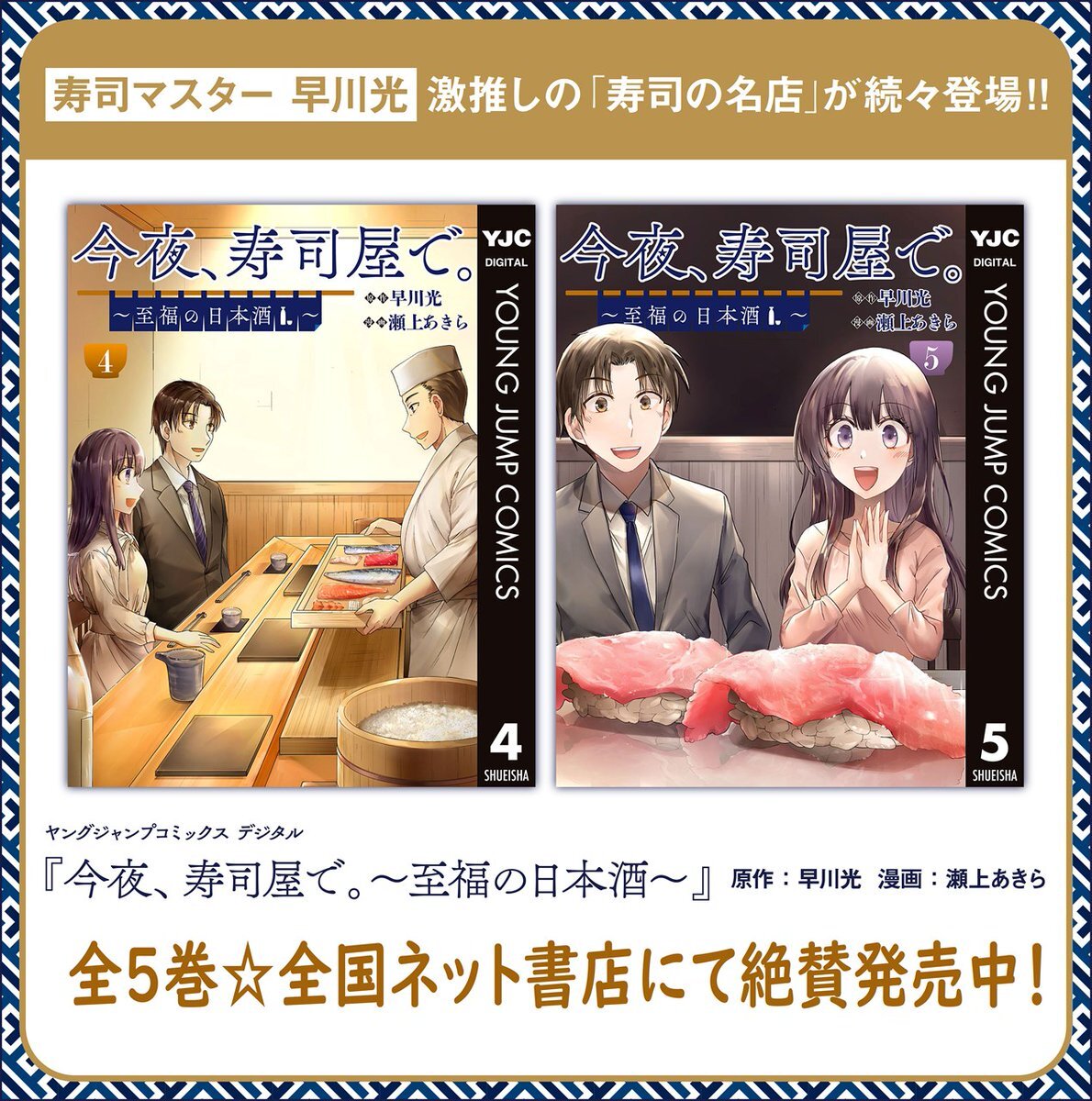 【お知らせ】 ⭐️早川光×瀬上あきらが送る 本当に❝美味しい❞寿司漫画 『今夜、寿司屋で。』 全5巻が 電子書籍で絶賛発売中‼ shueisha.co.jp/books/search/s… 実在する「最高に旨い寿司屋」が続々登場します‼ #スシ #TOKYO #寿司 #蛤 #ハマグリ #早川光 #瀬上あきら pic.x.com/bcNwR6znrM