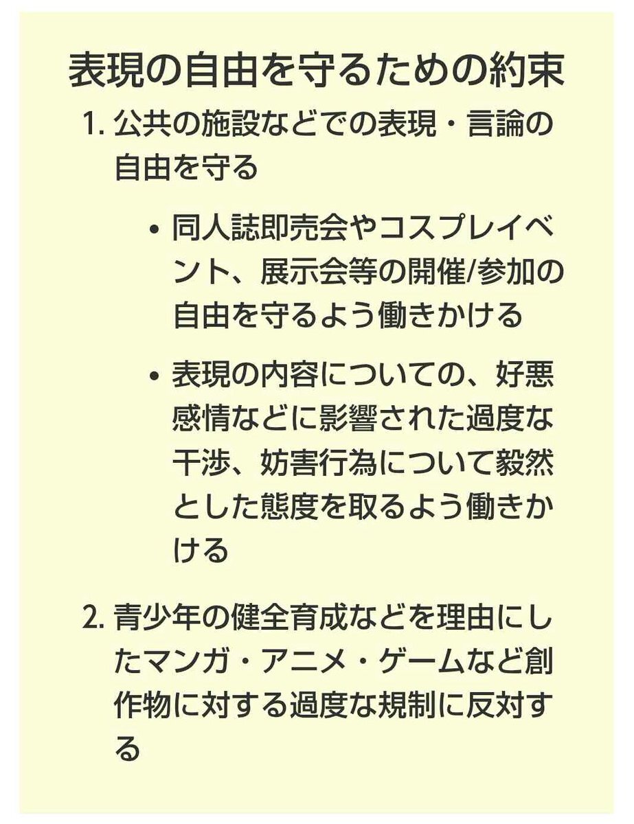 返信先:@ookumasinniti#表現の自由を守るための約束 への賛同は約束の賛同ですので、当然他の物事への賛同を意味しません。ですから約束への賛同はご協力をいただける範囲にも含められるかと思います。是非とも前向きにご検討をよろしくお願いいたします。