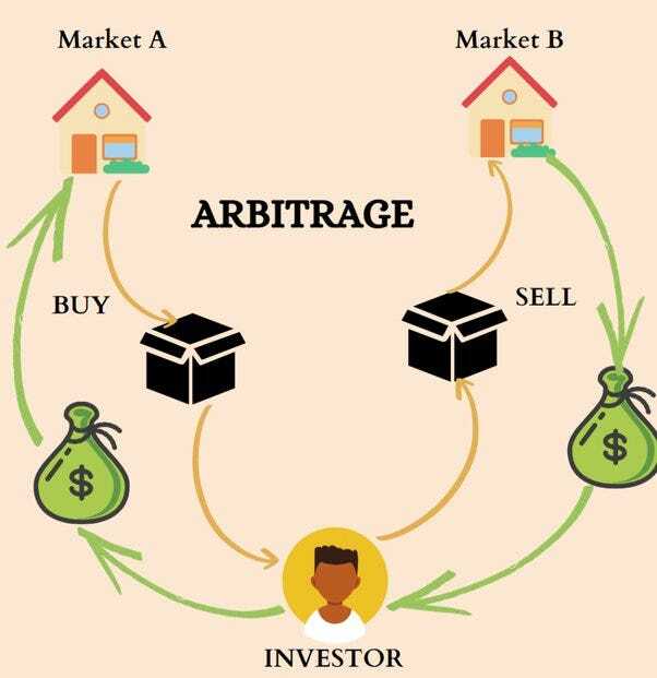 当時は金銀だったが、近年では仮想通貨で裁定取引が可能だった。交換所によってレートに差が生まれる瞬間があった。 ワシの友人は、その瞬間を狙って裁定取引で利ザヤを取っていた。但し瞬時の売買が必要なので、プログラムによる全自動化が必須で、凄すぎて真似できる代物では無かった😅 #裁定取引