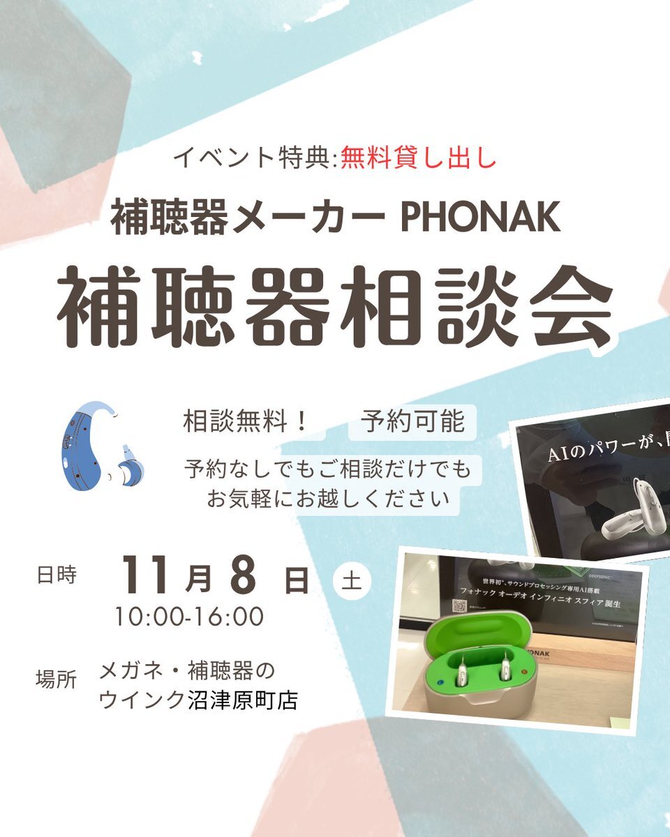 👂✨「聞こえづらいかも?」と思ったら 📅 **11月8日(土)**は【補聴器相談会】へ! ✅ ご家族の“聞こえ”、気になっていませんか? 💡当日は補聴器メーカー《PHONAK》の技術者が来店! 補聴器のご相談や、最新機種のご紹介もいたします #補聴器 #補聴器相談会 #メガネのウインク原町店 #フォナック pic.x.com/1WdZ7jnwAE