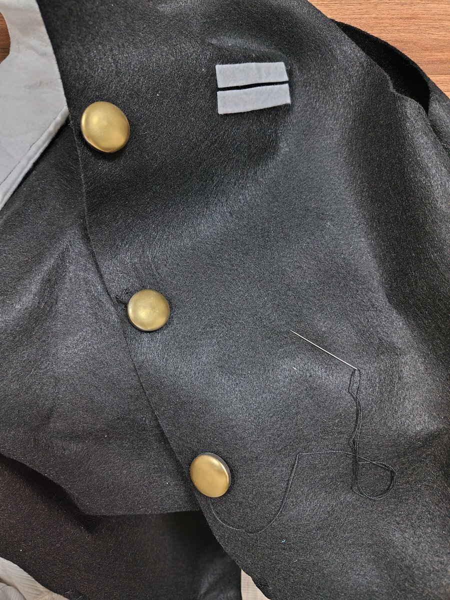 形になってきました…?フェルトだけど🤣w しかもボタンはハリボテw 100均クルミボタンが100均ラッカーで塗装されたものです👍 本当に…便利な物がお安く手に入るのでいい時代🥰💕 フェルトも100均も優秀すぎます🥰💕 #ゆるReコス #100均 #製作 #時短 pic.x.com/Qg2QmhIFXq