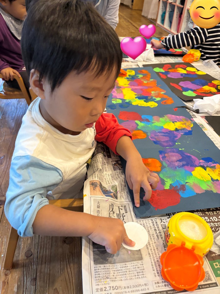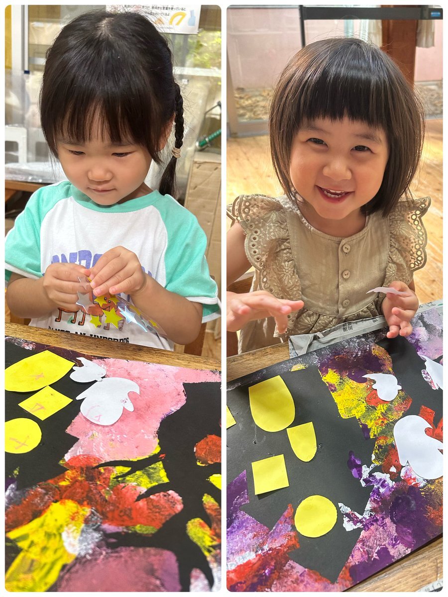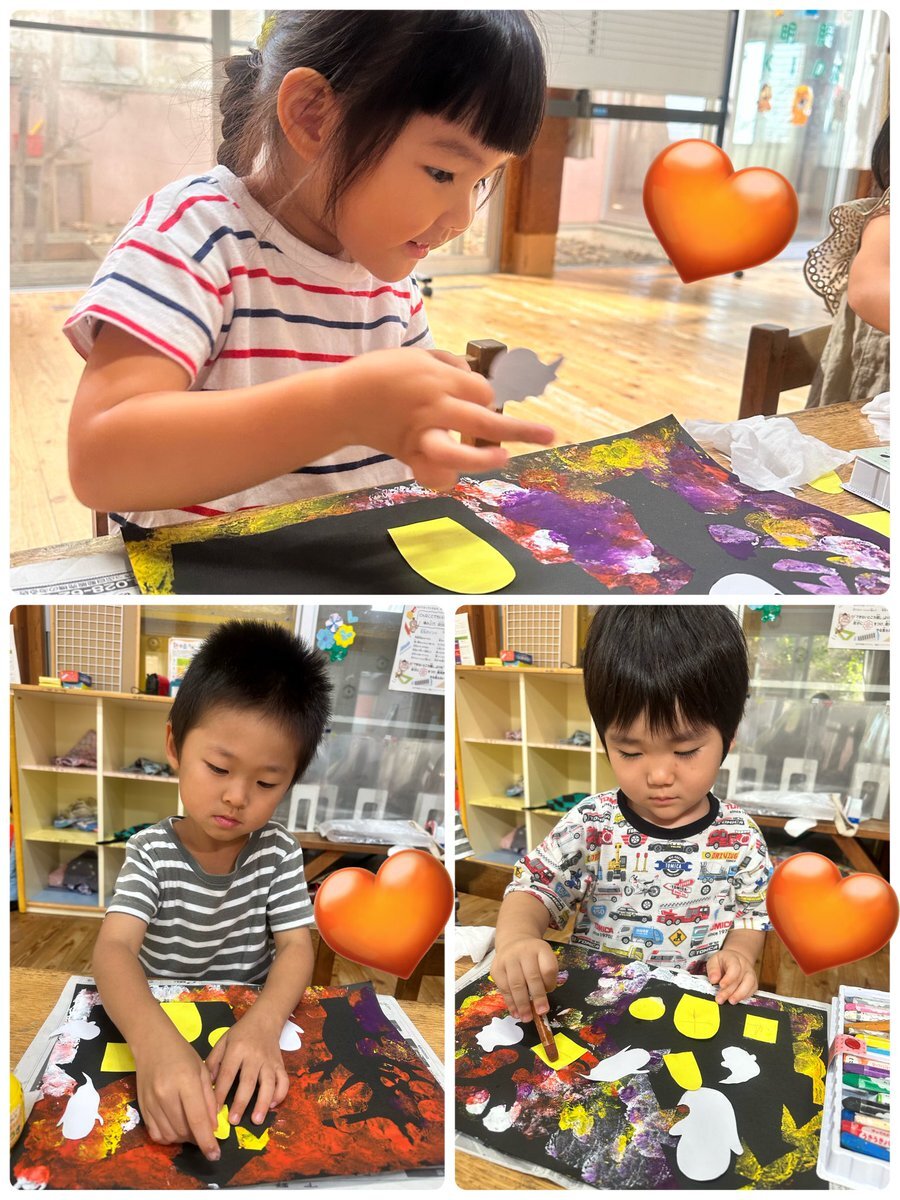 ハロウィン製作でモンスターを作りました🎃デカルコマニーで作った形に目を貼ると、個性豊かなモンスターの完成!ハロウィンの気分を味わえるように、お部屋に飾りたいと思います✨ #栃木県 #益子町 #七井保育園 #2歳児 #ハロウィン #製作 #モンスター #絵の具 #デカルコマニー #個性豊か pic.x.com/ZcobTwGfBd
