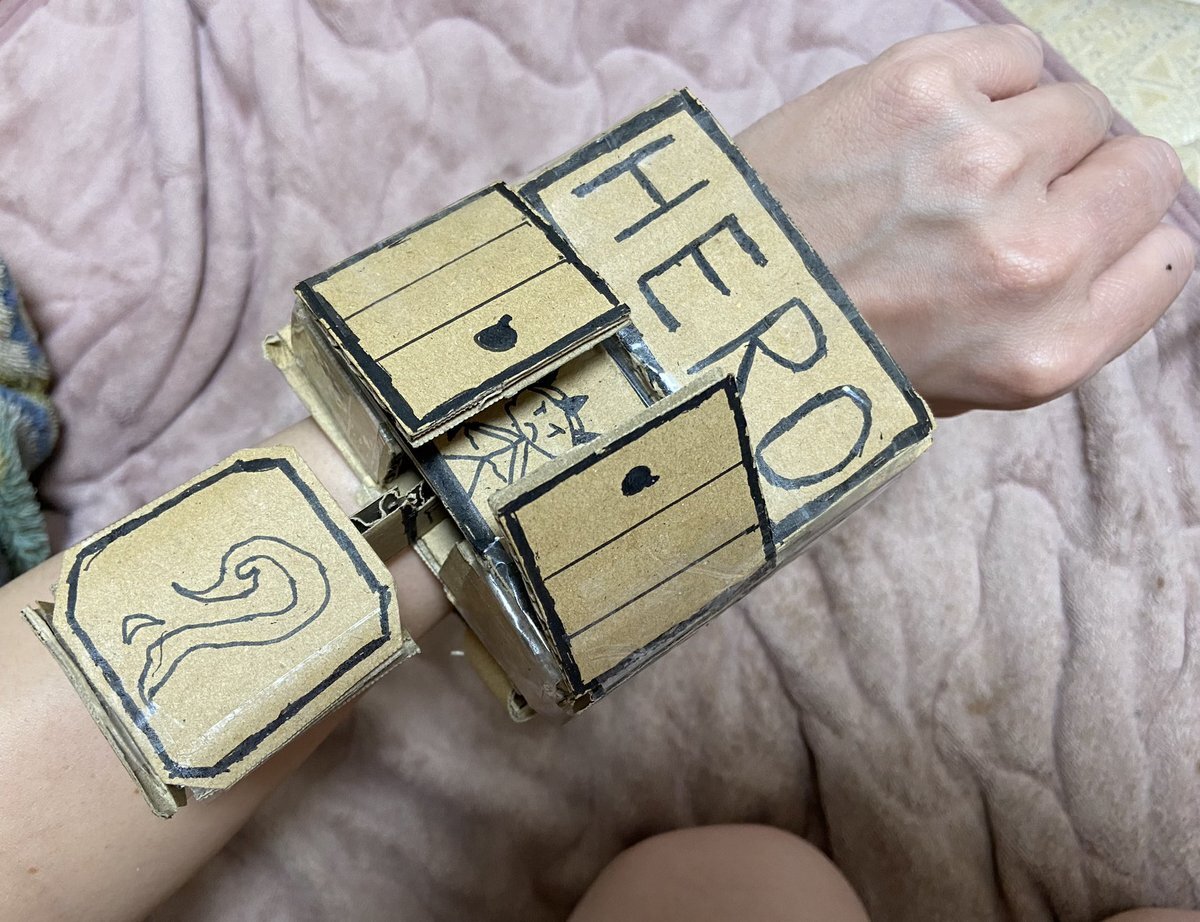 怒りに任せて壊した段ボール箱の残骸からオリキャラが使う変身アイテムの試作品を作ってみました〜♪ 変身用の試作鍵もいい感じ🗝️ 手動でしか稼働は無理だけど将来的にこれに近い形で完成させたいな〜🥰 #製作 #オリキャラ pic.x.com/sVjXnFQ6m1