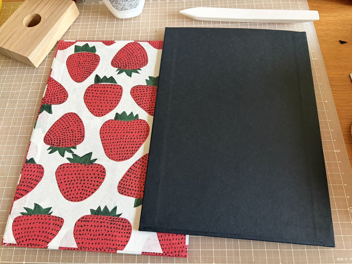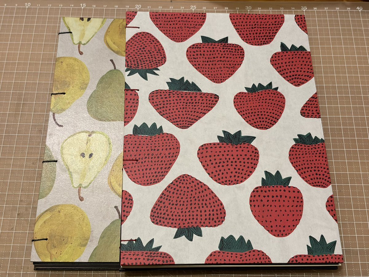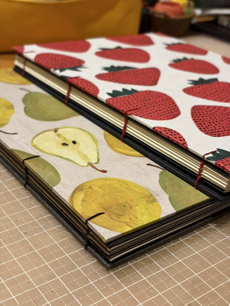 忘れないうちにコプティック装のノートの復習。表紙の芯紙を紙でくるむ。綺麗にできるようになるには数をこなすのが1番か。大胆に繊細に。素早く丁寧に。しっかり乾くまで挟みます。洋梨の表紙のよりは上手くできた感じかな。#製本 pic.x.com/xLKPj31Pav