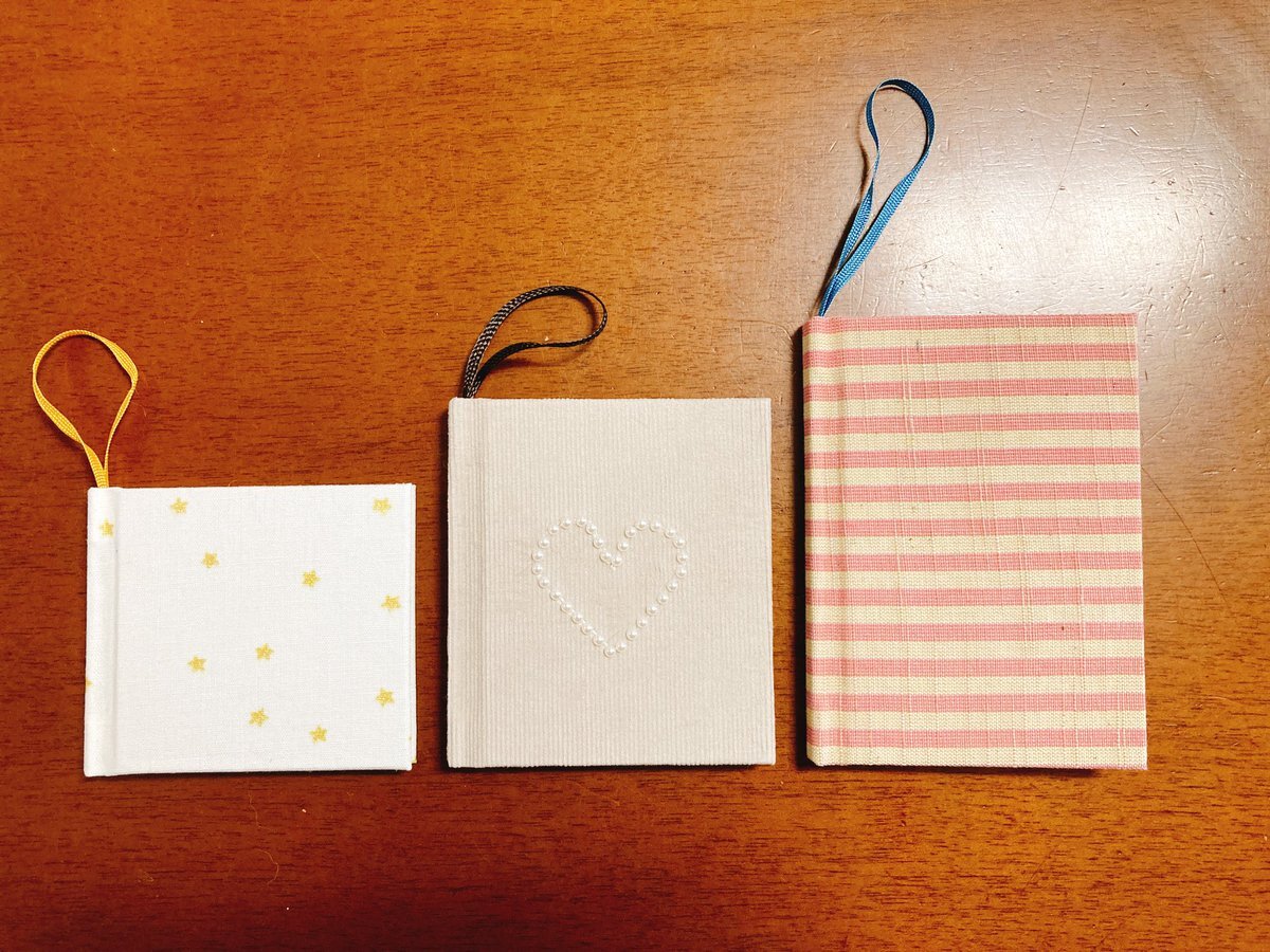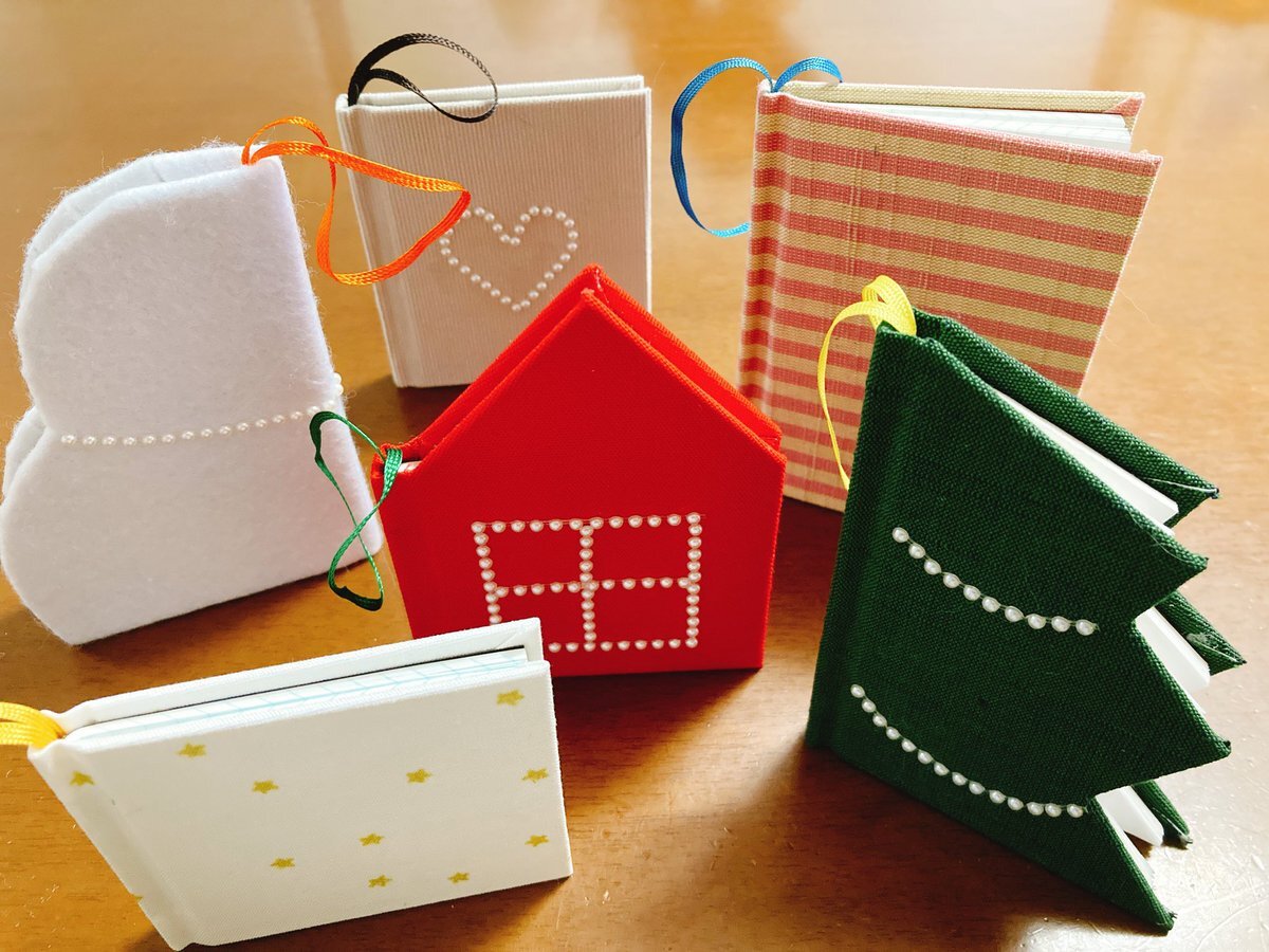 クリスマスオーナメント風🎄のミニブックを作りました。(早い?) 実はこれ、 #ハリネズミのちょこっと製本 をアレンジしたものなんです。 (ピンク縞が正規寸法) つくりながら可愛すぎて悶絶しておりました。 カッターの腕前に自信がある方、ぜひチャレンジしてみてください! #製本 #豆本 pic.x.com/ZajMBLskY0