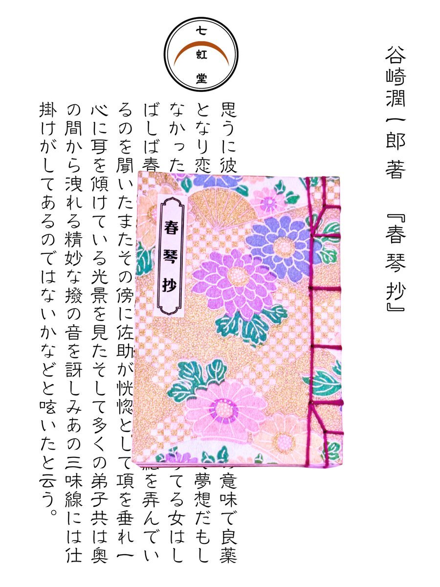 ••┈┈┈┈••販売のご案内【七 虹 堂】 【小さな和装本】A7サイズ 春琴抄 谷崎潤一郎 著 新作入荷致しました。 BASEにて販売しております。 shichikoudou.base.ec #和装本 #和綴じ本 #豆本 #製本 #ハンドメイド #谷崎潤一郎 pic.x.com/qtl4xUVQGk