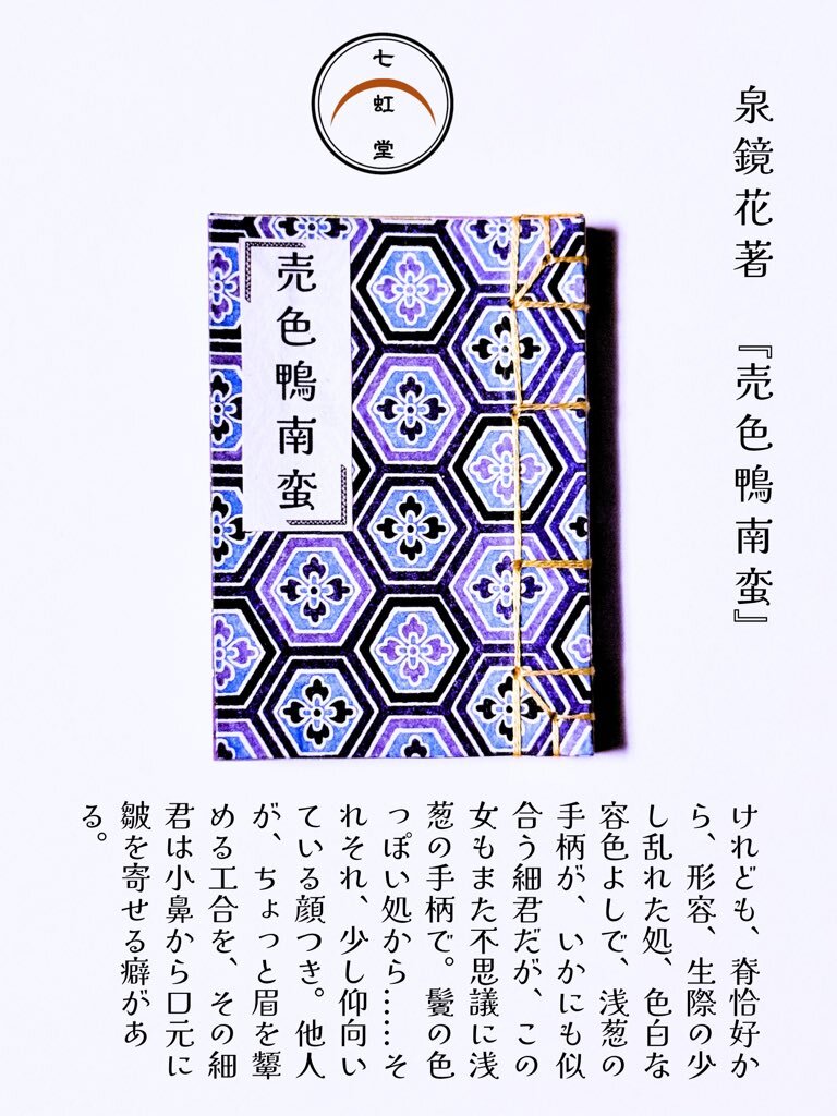 ••┈┈┈┈••販売のご案内【七 虹 堂】 【和装豆本】A8サイズ 売色鴨南蛮 泉鏡花 著 新しく製本致しました︎︎︎☺︎ BASEにて販売しております。 shichikoudou.base.ec #和装本 #和綴じ本 #豆本 #製本 #ハンドメイド #泉鏡花 pic.x.com/tfOFn5BHxs
