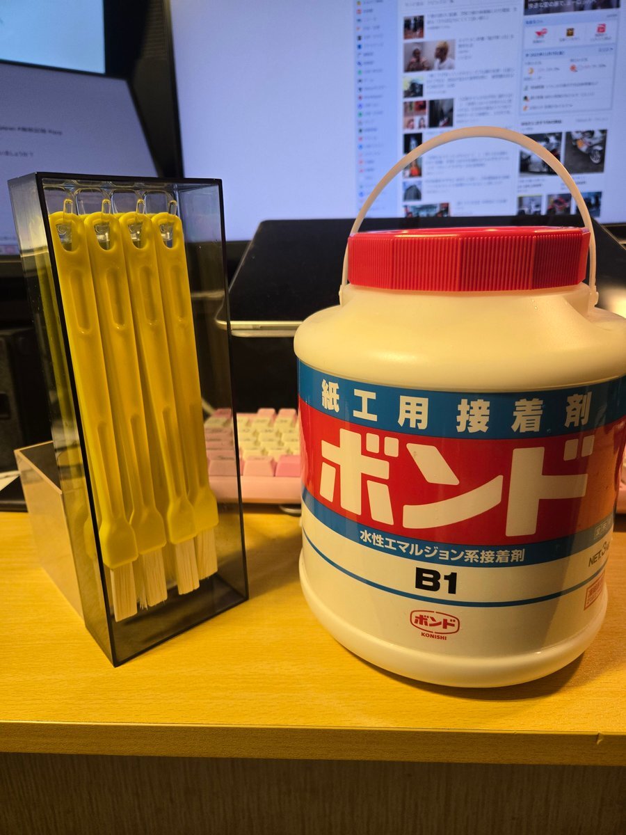 製本道具紹介① 📘 ボンドと刷毛 手帳をつくろう!と思い立って買った特大ボンド。 さすが紙工用、頼れる相棒です。 そして刷毛。 ヘラや歯ブラシも試しましたが── やっぱり最終的にたどり着くのは「刷毛」。 気に入って同じものを買い続けています。 #workoutdiary #製本 #手帳 #文房具 pic.x.com/60rYDcCNfs