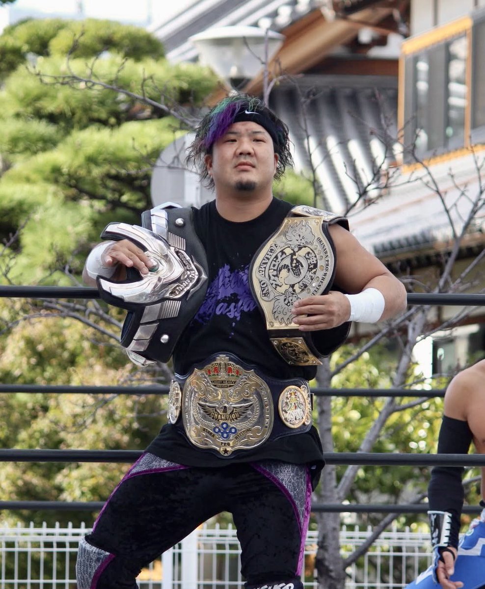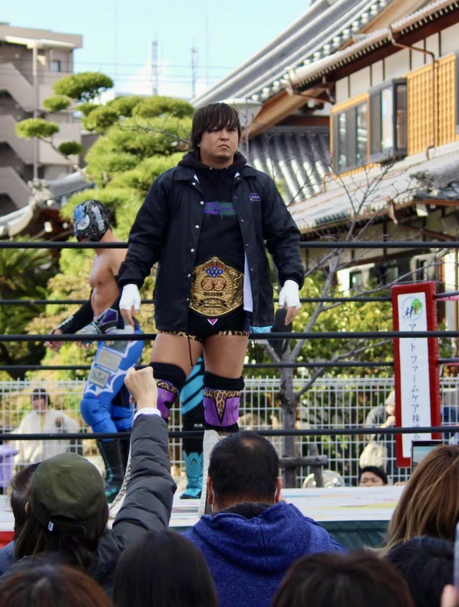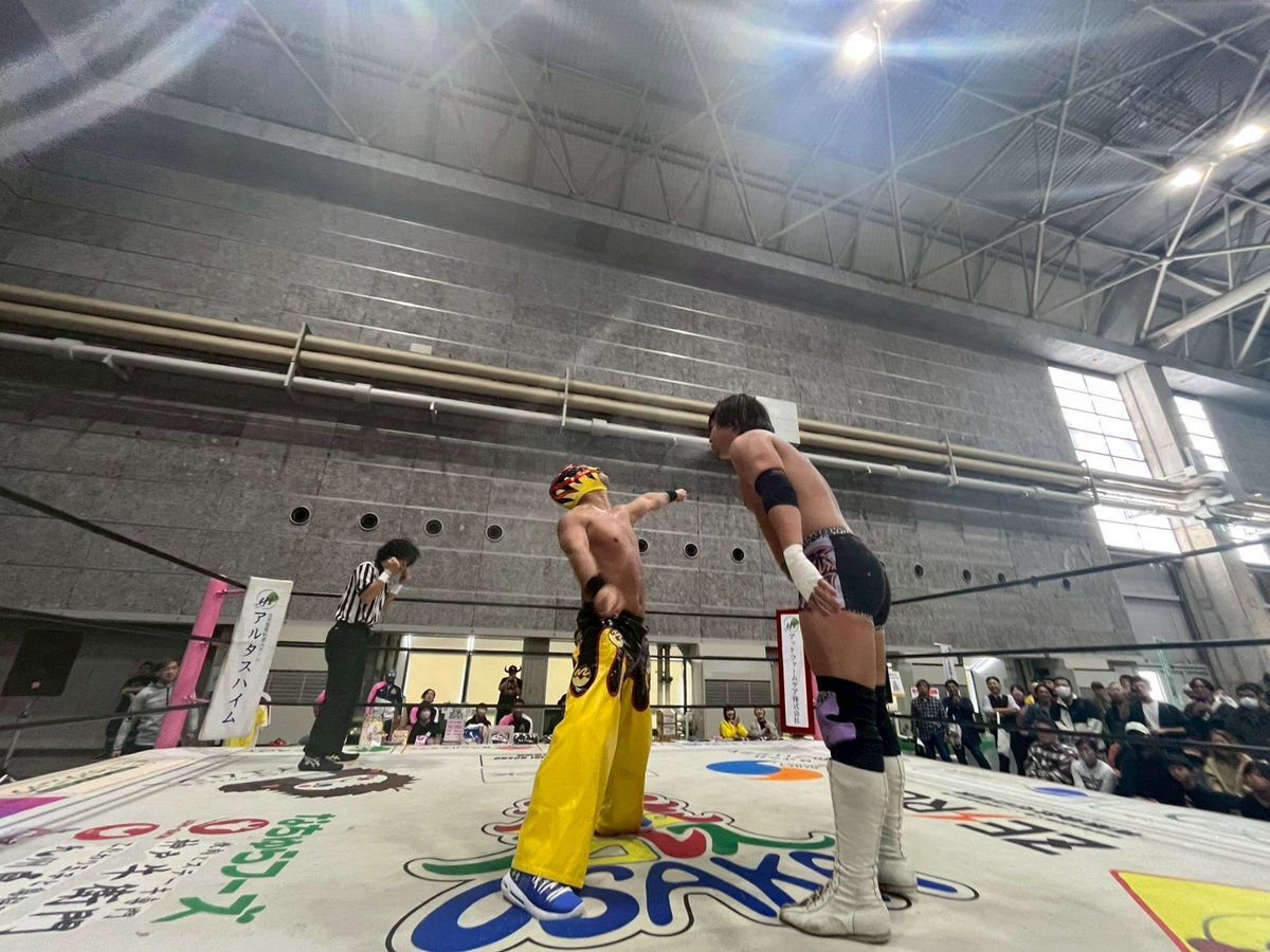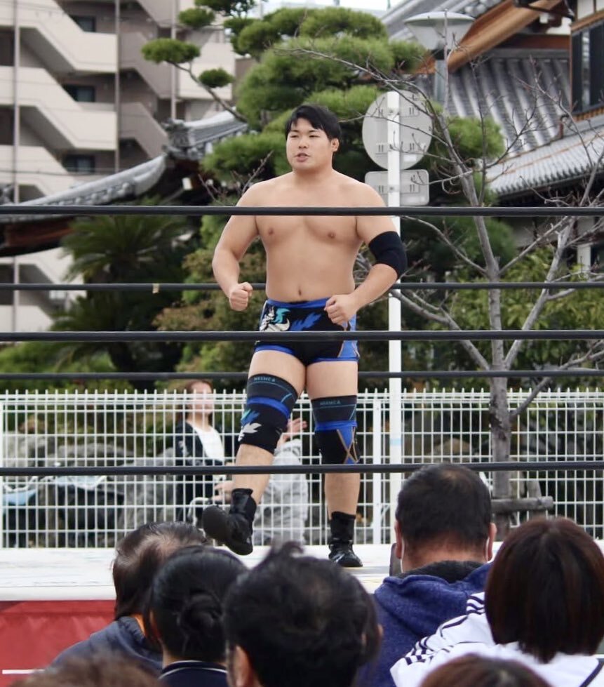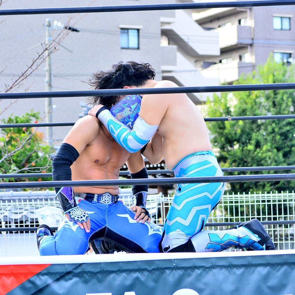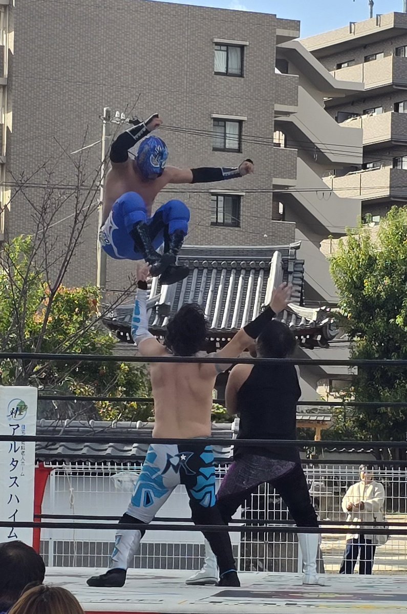 2025/11/03 さいご吠えるとこまでがデフォだな。笑 流れで飛ぶタイミング分かるのに最初取り損ねた…悔しい🥲︎ 今日もうつくしいなぁ #松房龍哉 #大阪プロレス #西栄寺 pic.x.com/mirN9hf2ow