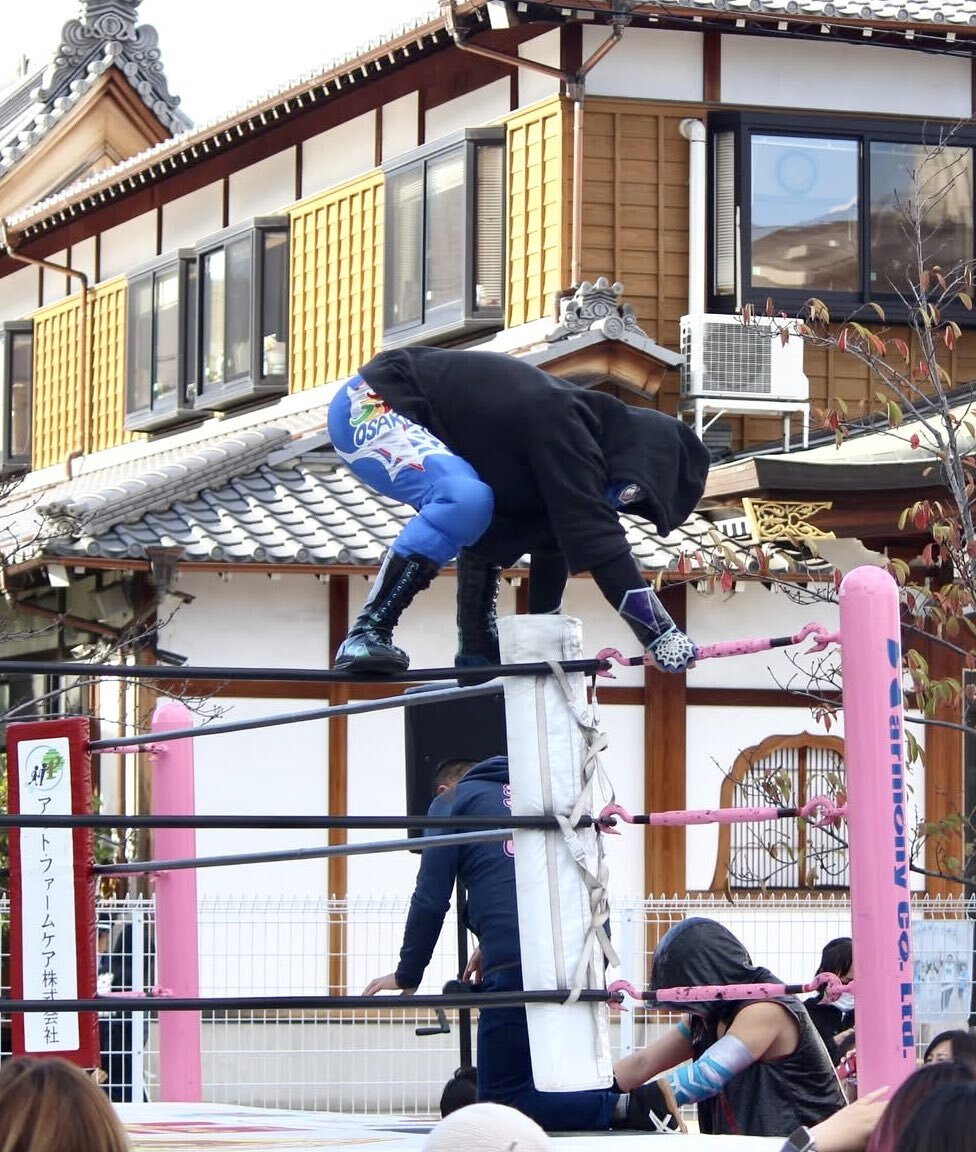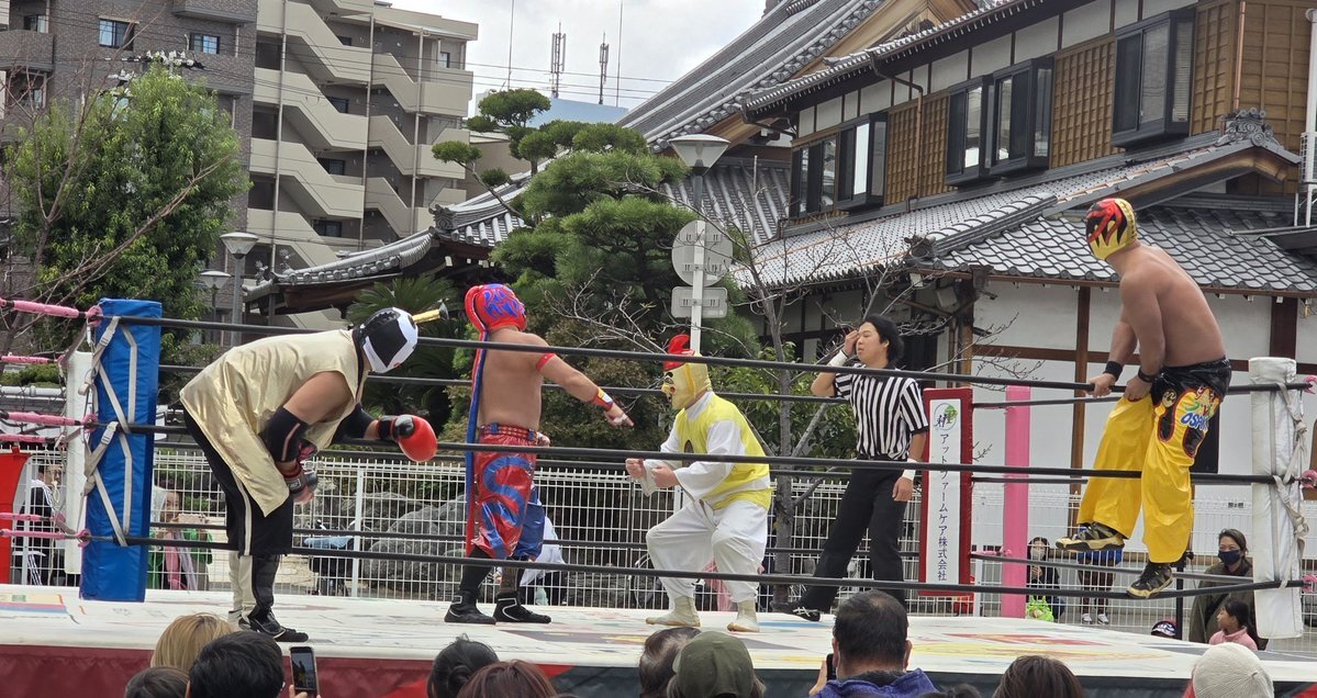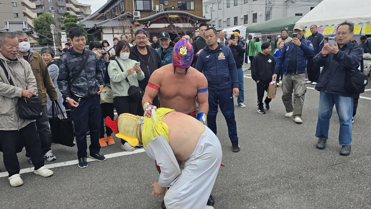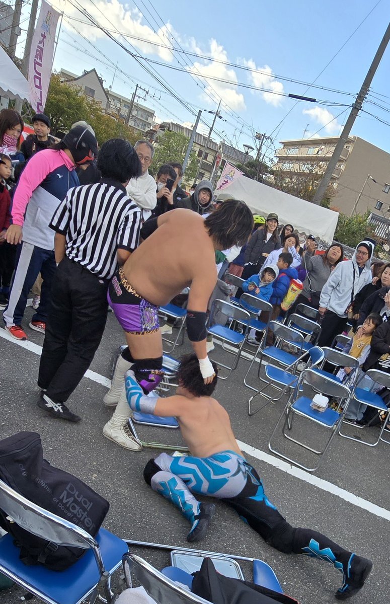 『大阪プロレス』 西栄寺秋祭り大会 西栄寺駐車場 2025.11.03 #西栄寺 #大阪プロレス 第2試合 大坂丈一郎、えべっさん vs HUB、タコヤキーダー pic.x.com/iO4eGV0n7f