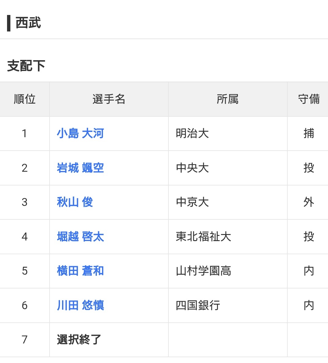 #ドラフト#西武#小島大河 の単独指名に成功 明大からの指名は16年連続でNPB最長に | 東スポWEB tokyo-sports.co.jp/articles/-/364…