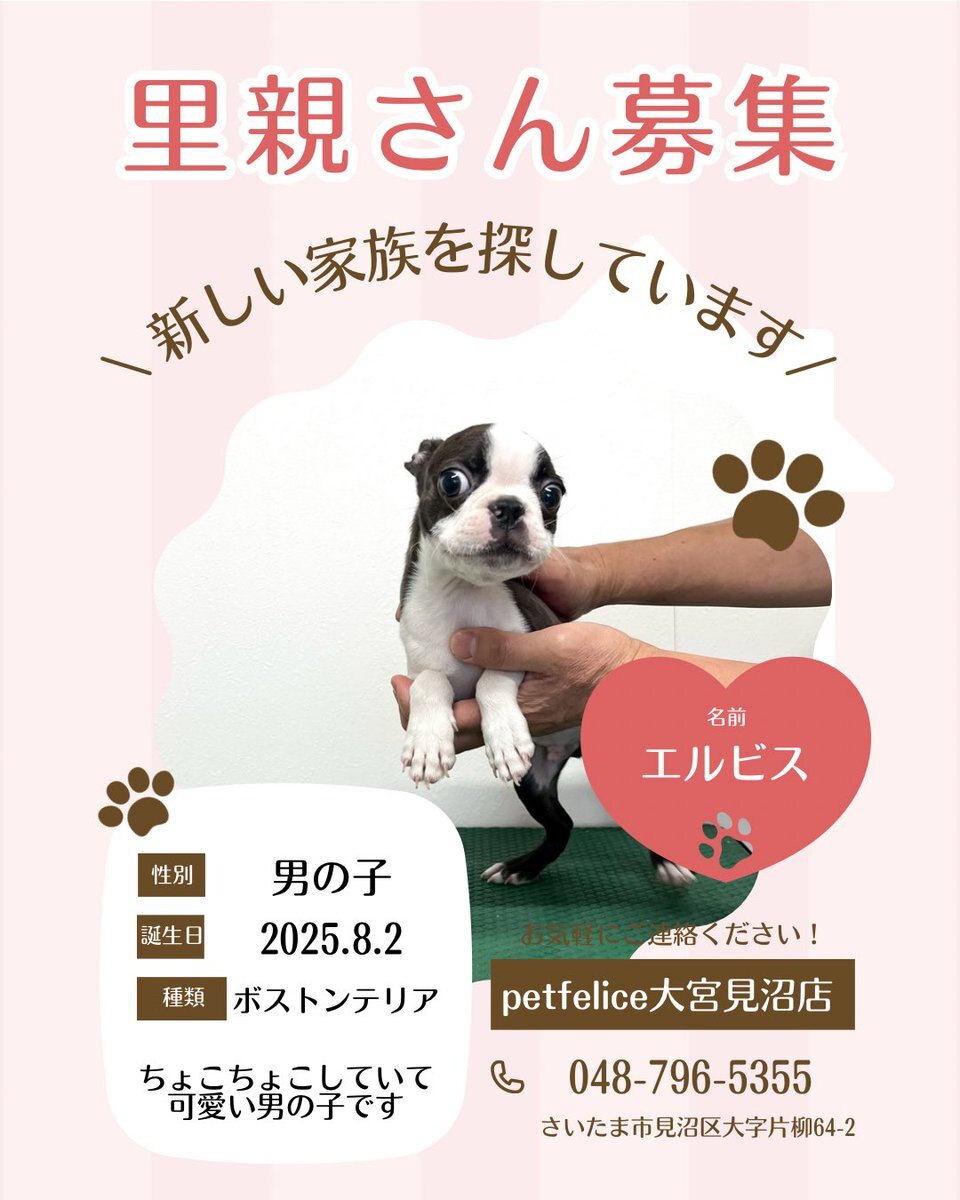 【里親様募集中🐾】 名前.▹ エルビス #ボストンテリア 2025.8.2 男の子 素敵なご縁がありますように(⁎ᴗ͈ˬᴗ͈⁎) 混雑緩和とスムーズなご案内のために ご予約をお願いいたします。 見沼店から与野店へ店舗移動の可能性があります。 #見沼 pic.x.com/Qv8NGydcGj