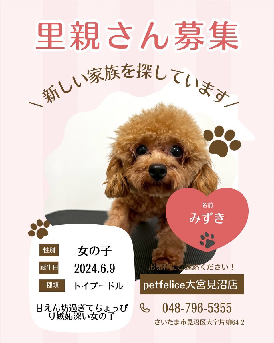 【里親様募集中🐾】 名前.▹みずき #トイプードル 2024.6.9 女の子 素敵なご縁がありますように(⁎ᴗ͈ˬᴗ͈⁎) 混雑緩和とスムーズなご案内のために ご予約をお願いいたします。 見沼店から与野店へ店舗移動の可能性があります。 #里親募集中 #保護犬 #埼玉 #見沼 #petfelice pic.x.com/XEELSrHxjP