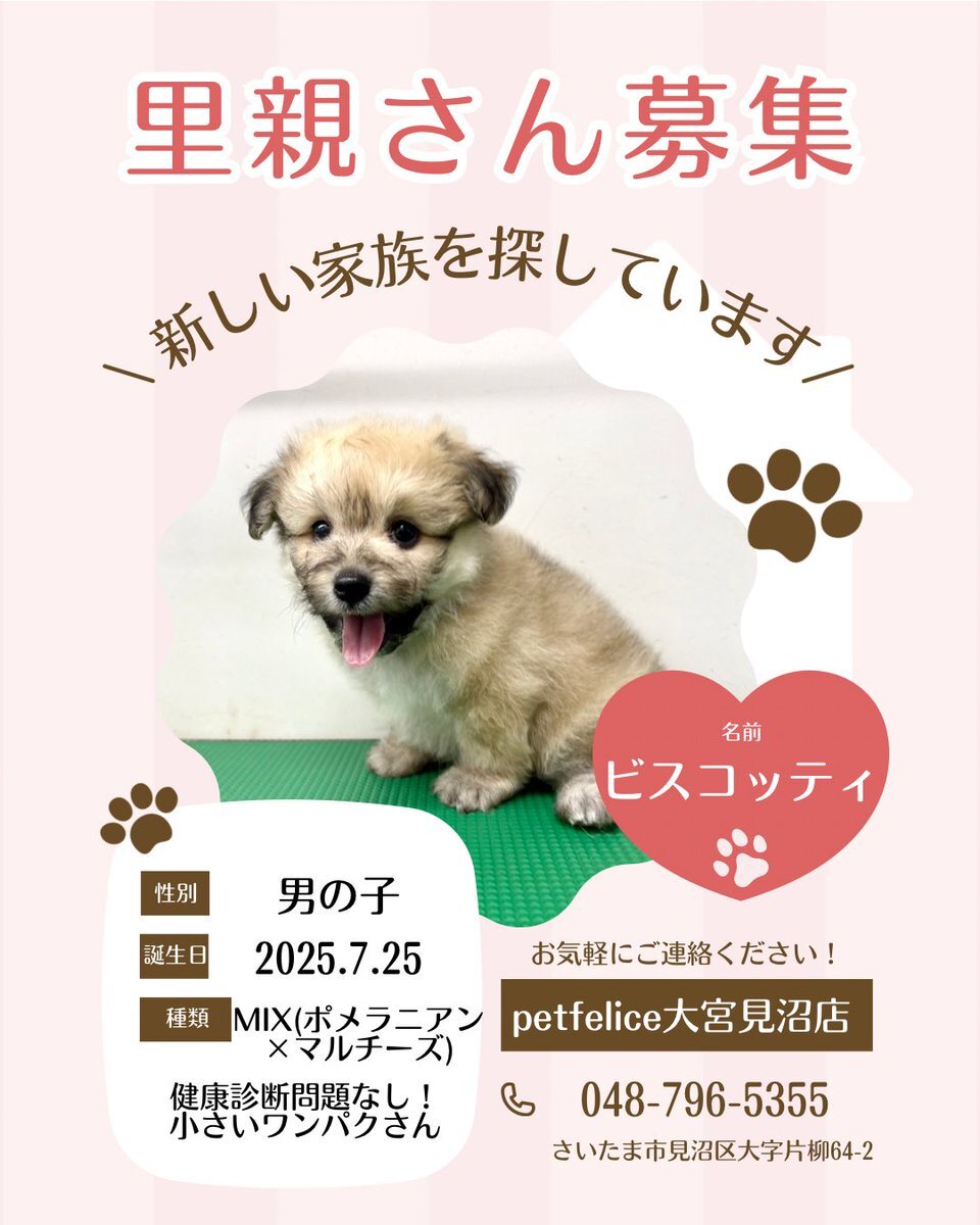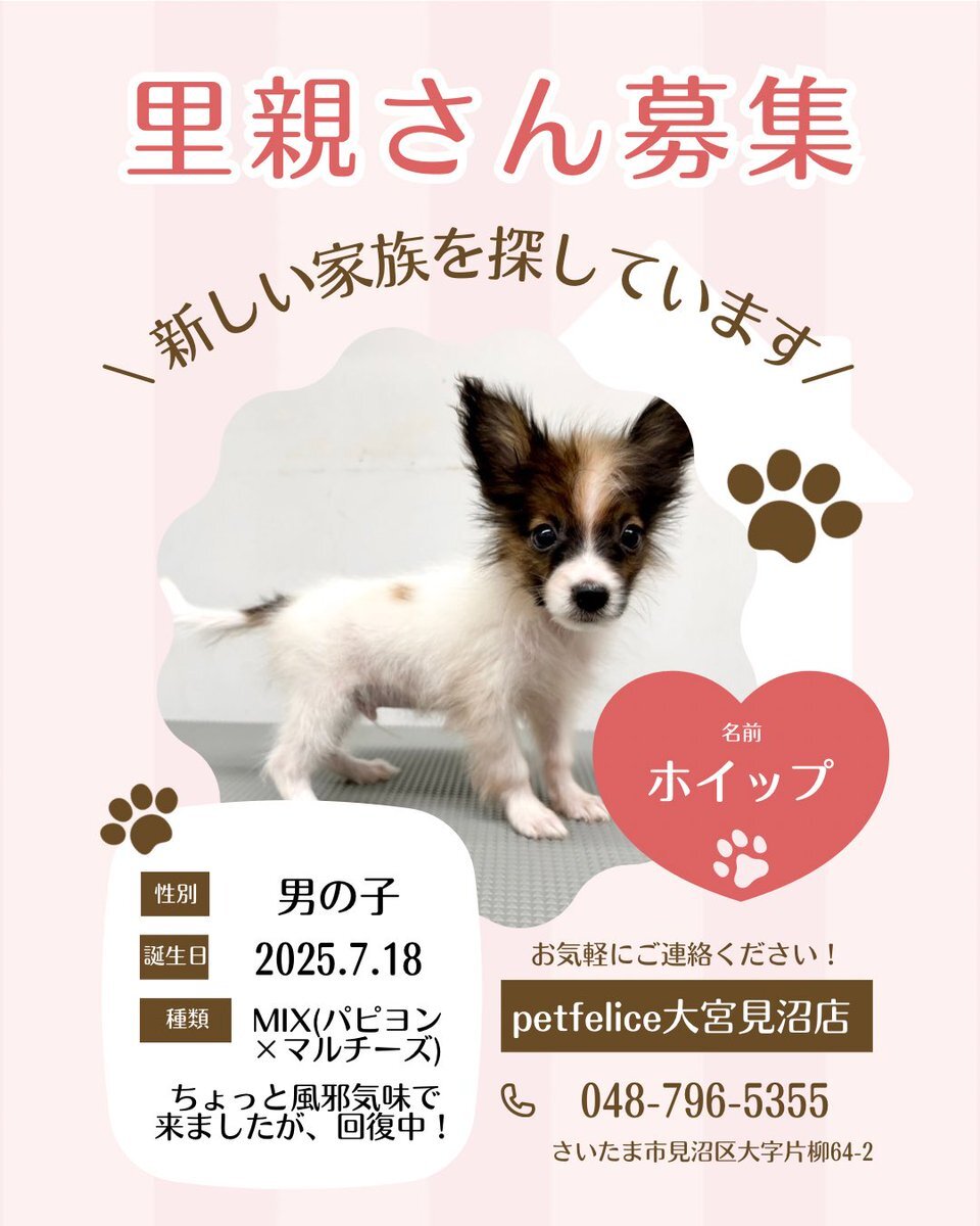 【里親様募集中🐾】 名前.▹ホイップ #MIX 2025.7.18 男の子 素敵なご縁がありますように(⁎ᴗ͈ˬᴗ͈⁎) ▶petfelice(ペットフェリーチェ) さいたま市見沼区大字片柳64-2 048-796-5355 #里親募集中 #保護犬 #埼玉 #見沼 #petfelice pic.x.com/dZoQNPz4yH