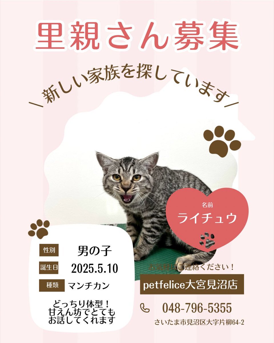 【里親様募集中🐾】 名前.▹ライチュウ #マンチカン 2025.5.10 男の子 素敵なご縁がありますように(⁎ᴗ͈ˬᴗ͈⁎) ▶petfelice(ペットフェリーチェ) さいたま市見沼区大字片柳64-2 048-796-5355 #里親募集中 #保護犬 #埼玉 #見沼 #petfelice pic.x.com/gK9NKbUYiY