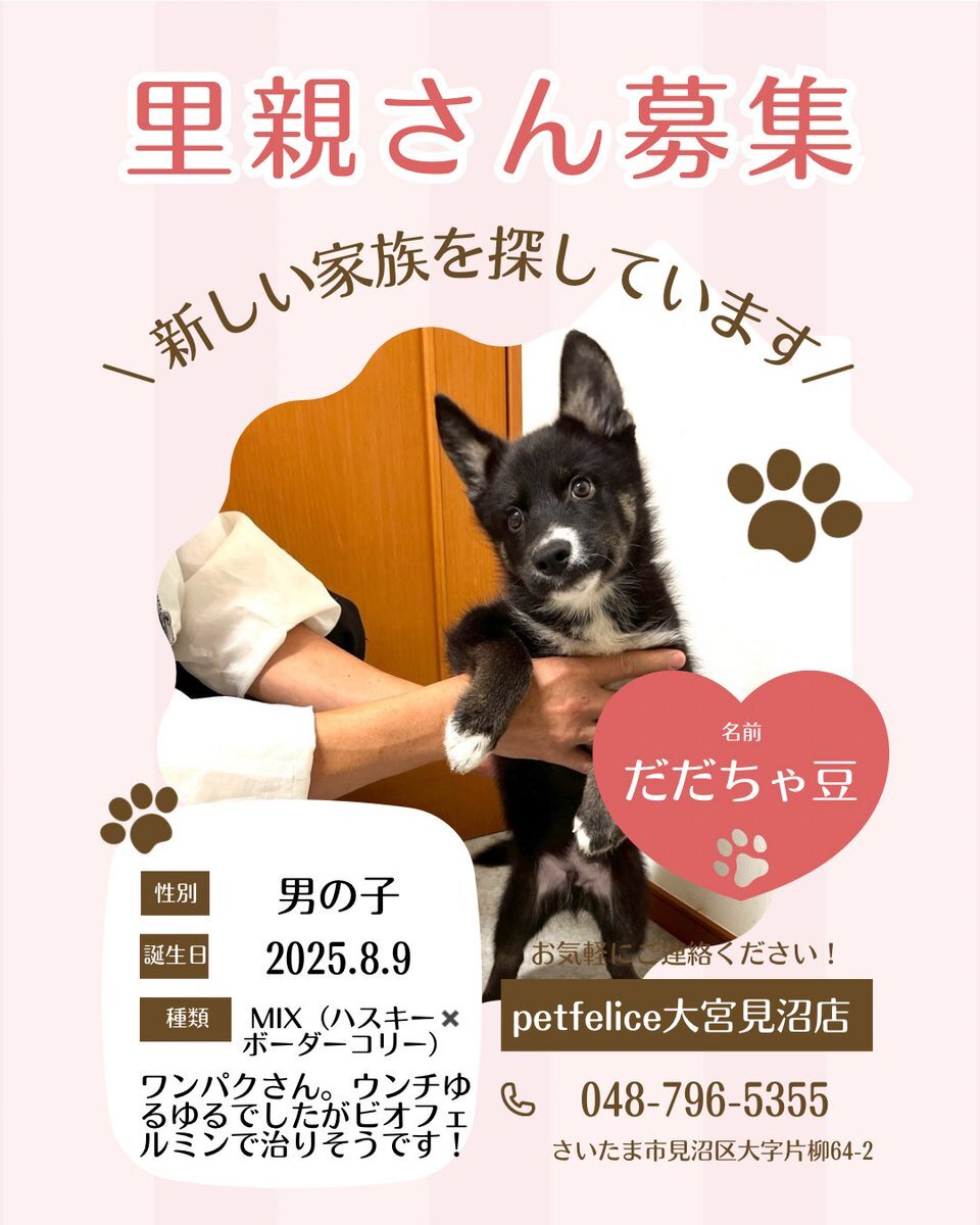 【里親様募集中🐾】 名前.▹だだちゃ豆 #MIX 2025.8.9 男の子 素敵なご縁がありますように(⁎ᴗ͈ˬᴗ͈⁎) ▶petfelice(ペットフェリーチェ) さいたま市見沼区大字片柳64-2 048-796-5355 #里親募集中 #保護犬 #埼玉 #見沼 #petfelice pic.x.com/SfY1XPIU4B