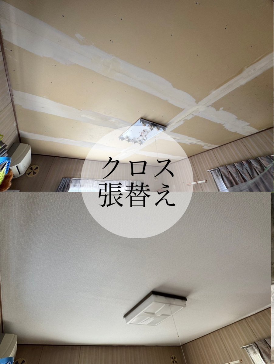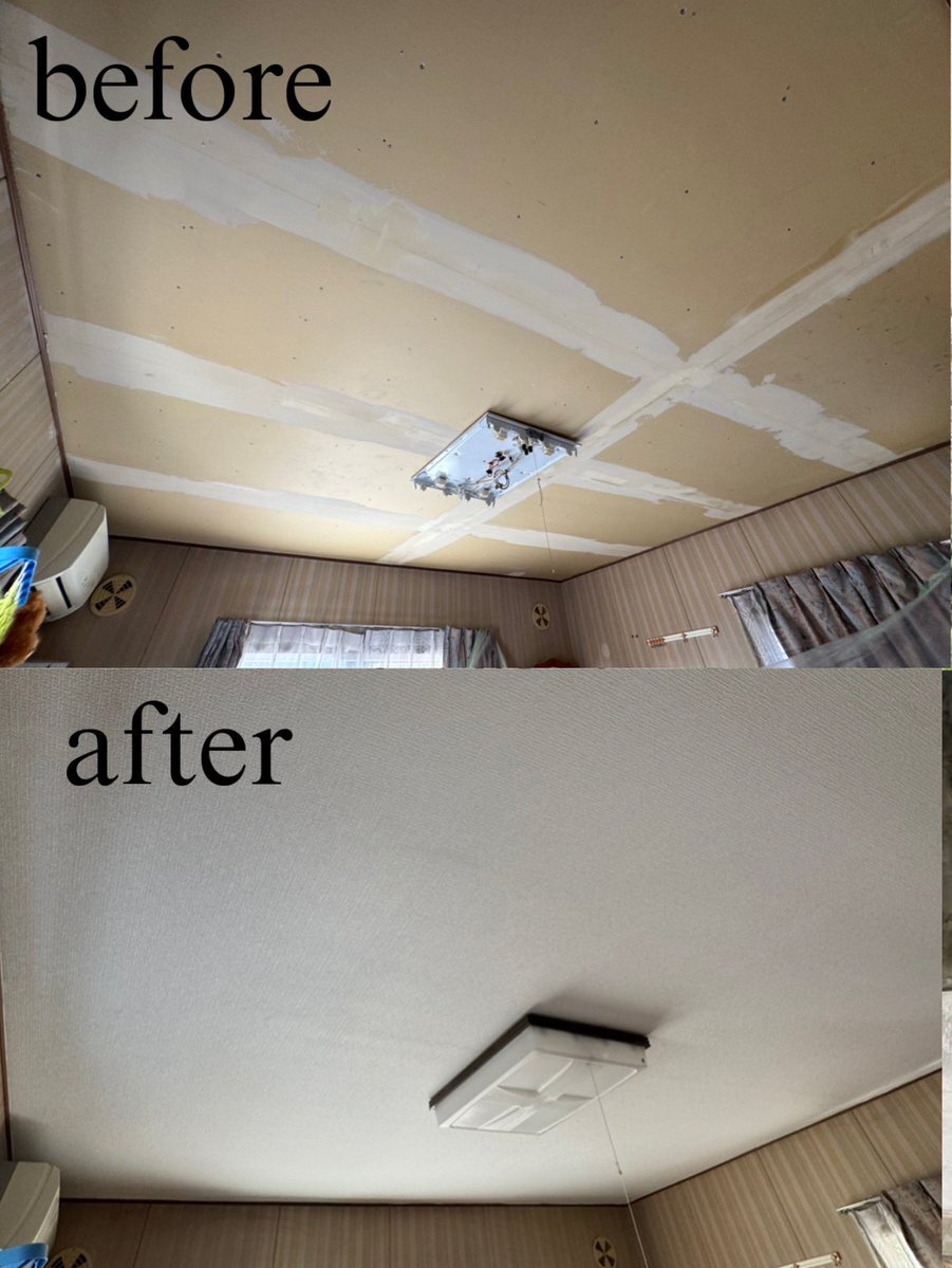 西山台 片山様邸の、 天井のクロス張替えを行いました✨ 時間が経つと、ヤニ汚れやシミ、色あせが目立ってきますよね。 張り替えるだけで、お部屋全体がぐっと明るくなります🌿 見上げたときに「きれいだな」と感じられる空間づくりをお手伝いします! #見積もり無料 #長崎 pic.x.com/VZ3VLYq9Pz