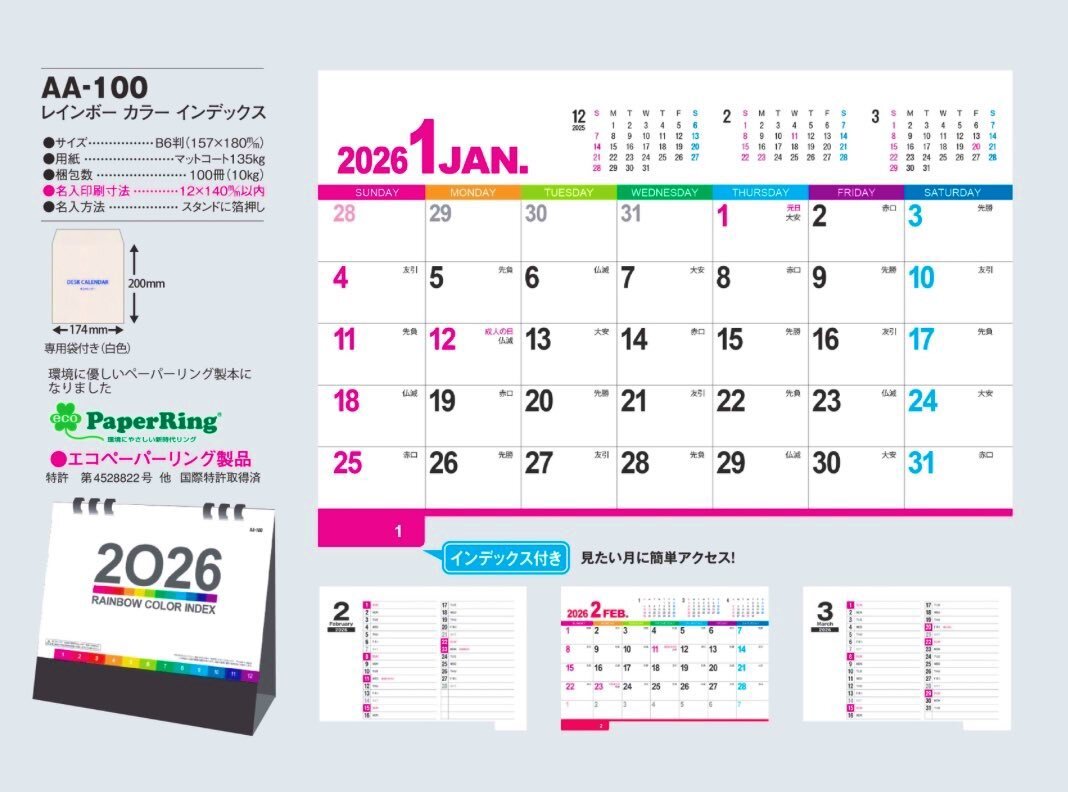 11/4(火)おはよう川越☀️ まだ間に合う🏃♂️🏃♀️ 【AA-100】RAINBOW COLOR INDEX ※卓上カレンダー 昨年から製本リングが、金具から エコな紙製にリニューアル 従来の利便性に加え、 環境にも配慮した大人気商品です📆🥇 #見積もり無料 #名入れカレンダー #企業公式が毎朝地元の天気を言い合う pic.x.com/UfnrelTrCJ