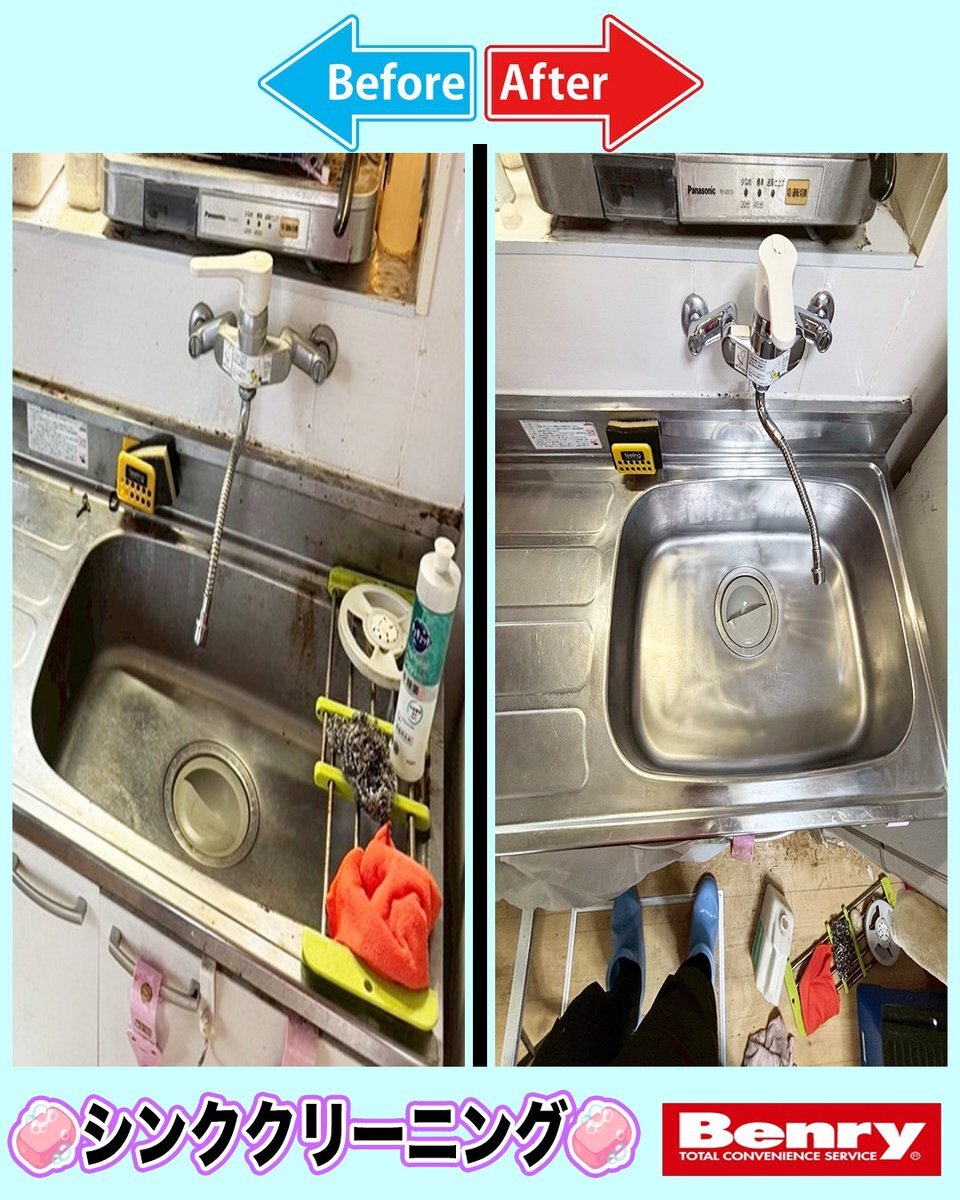 こんにちわ〜🙋♀️✨ 本日はキッチンシンククリーニングのご紹介です🤗❣️ピカピカに仕上がりました🧼🫧 ベンリーでは様々な案件を承っております🙋♀️🌈✨ お困りの際は是非ご相談くださいませ😇‼ #キッチンクリーニング #シンククリーニング #ハウスクリーニング #八千代市 #見積もり無料 pic.x.com/zbAmKQxO97