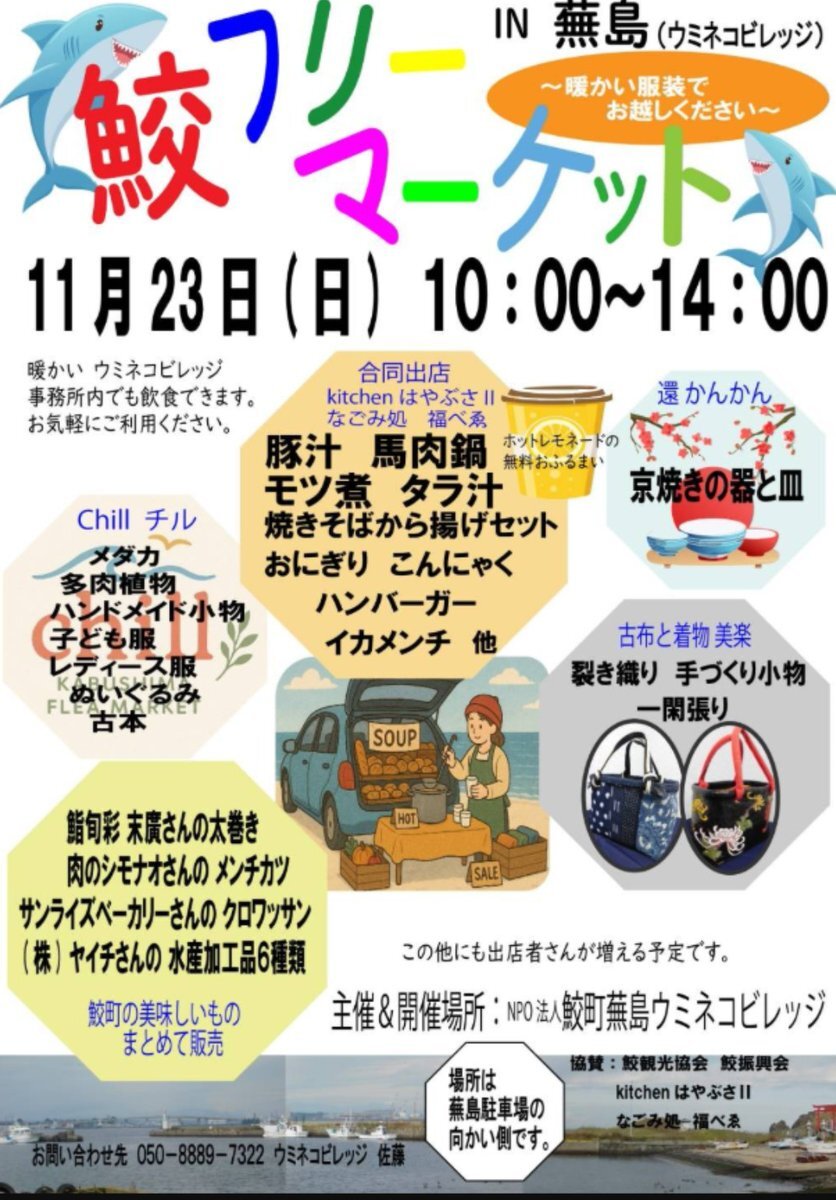 鮫町も楽しいイベントがいっぱい✨️ 温かい豚汁や馬肉鍋、モツ煮、タラ汁など、寒い日に嬉しい汁物がたくさんあって魅力的です! 日時: 11月23日(日) 10:00〜14:00